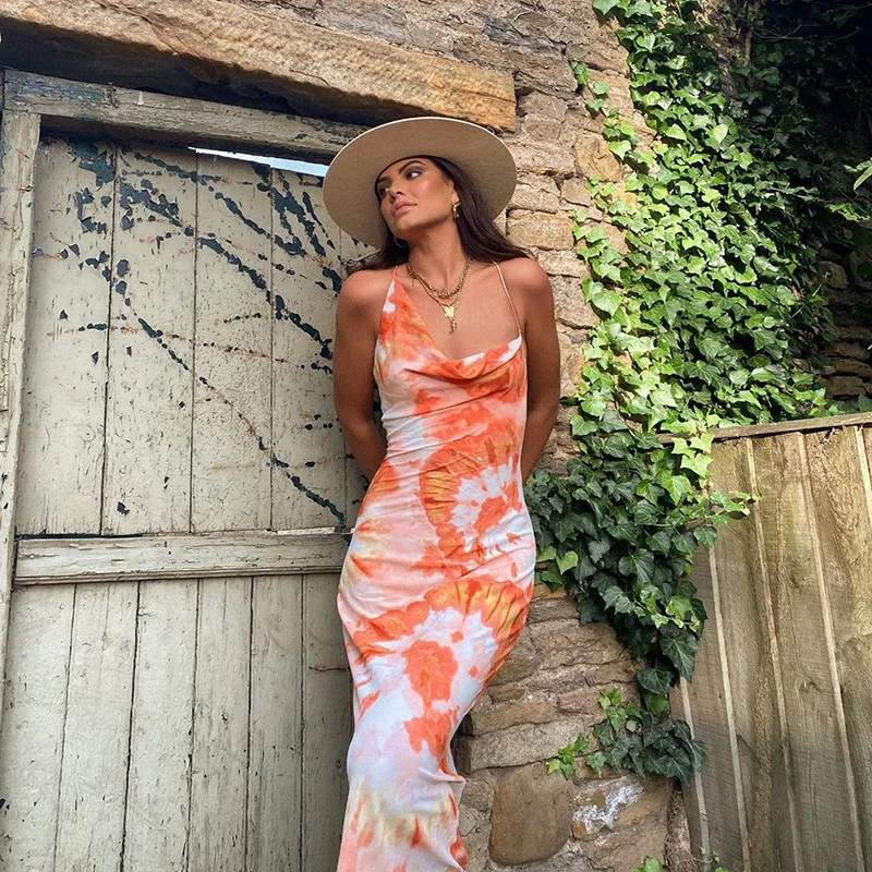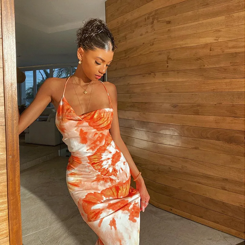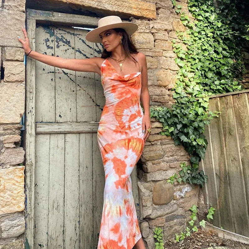 2025 Summer New Fashionable Printed Tie Dye Dress Sexy Backless Strapless Long Dresses Beach Style Camisole Dress for Women 923