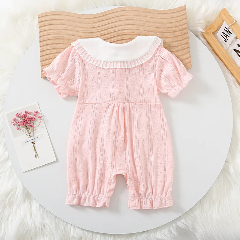 2025 Summer Newborn Baby Girl Pink Thin Short-Sleeve Romper Princess Style Cute Pure Cotton Baby Girl Clothes