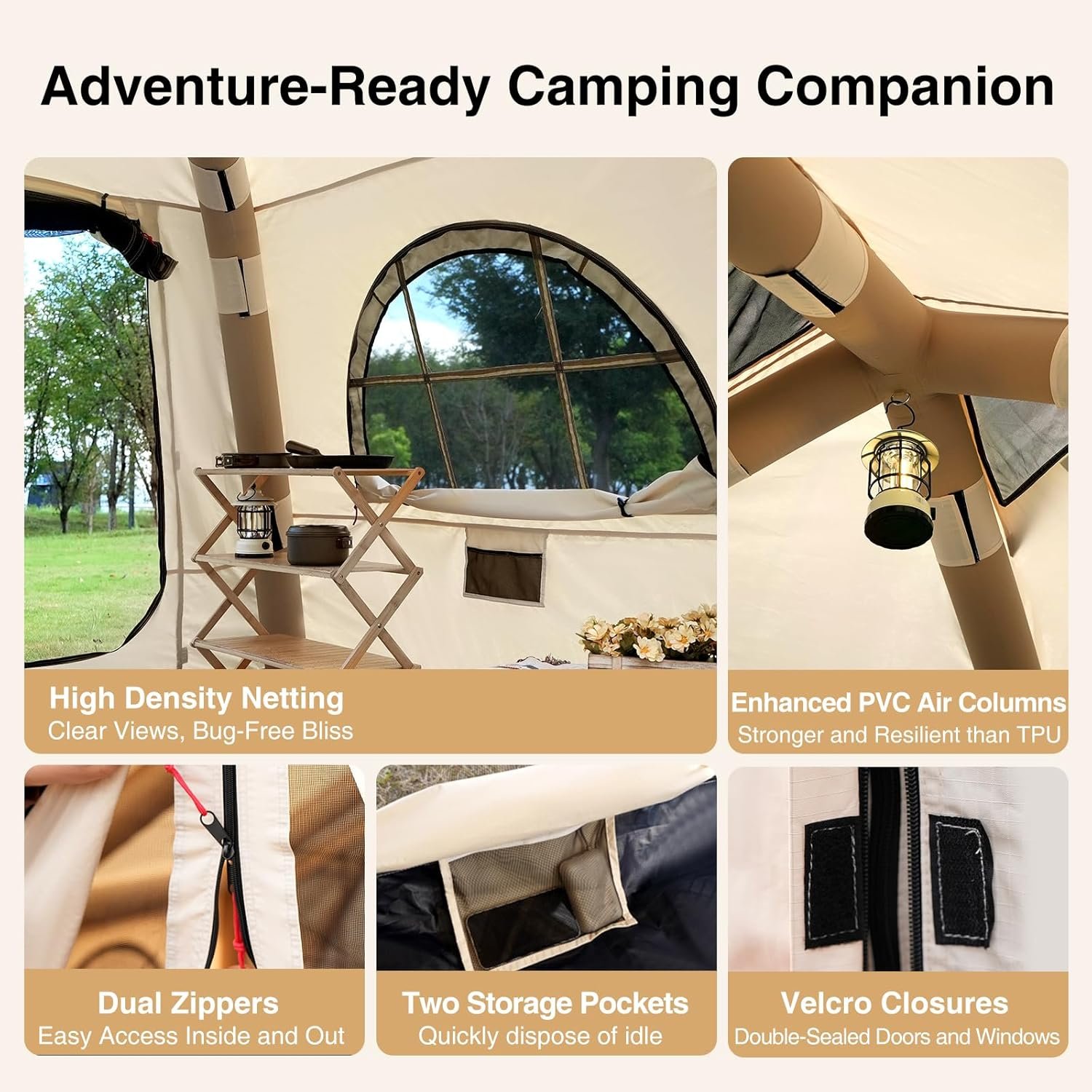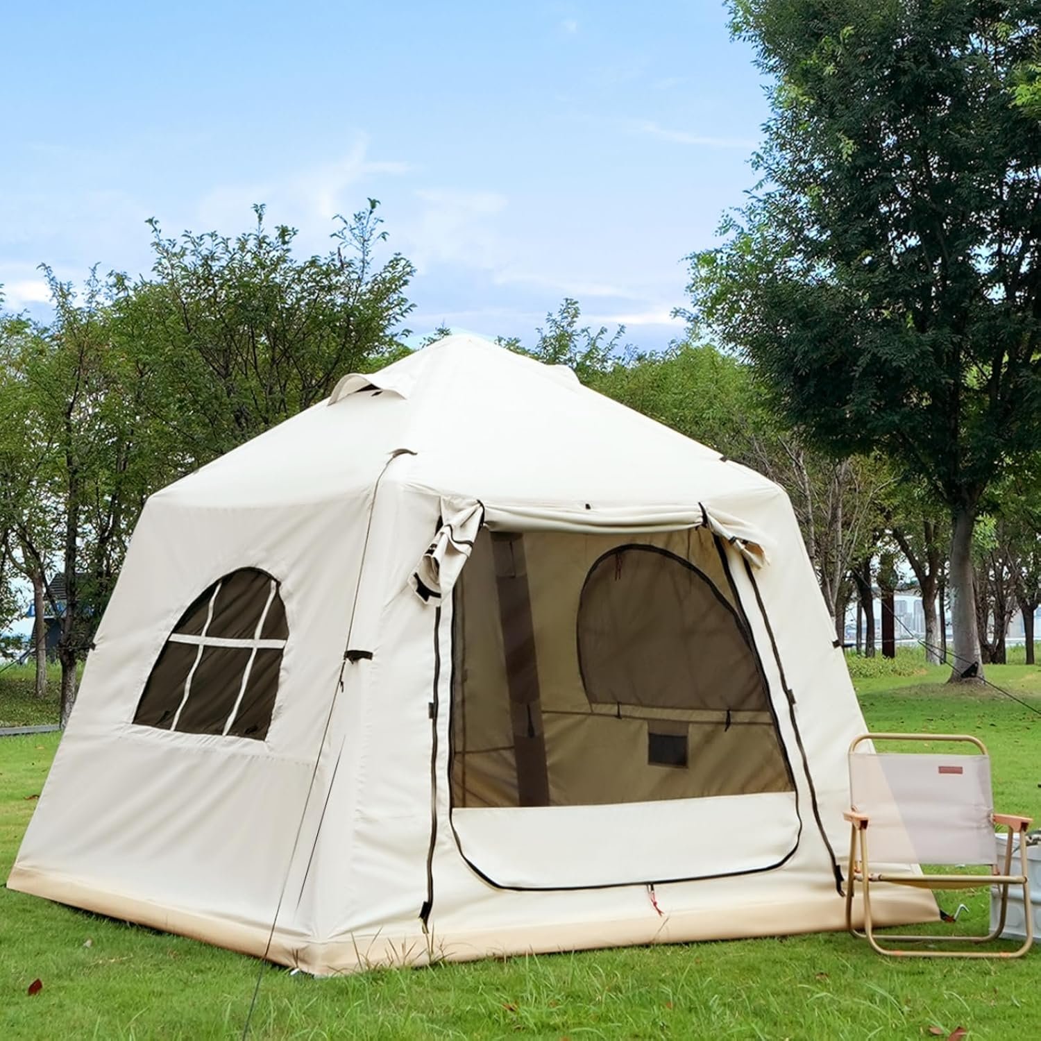 Dual-layer Windows and Exquisite Zipper: Designed with Dual-layer Windows and Doors, allowing you to enjoy fresh air while maintaining your personal space.Large inflatable house tent enhanced durability with dual zippers and extra adhesive