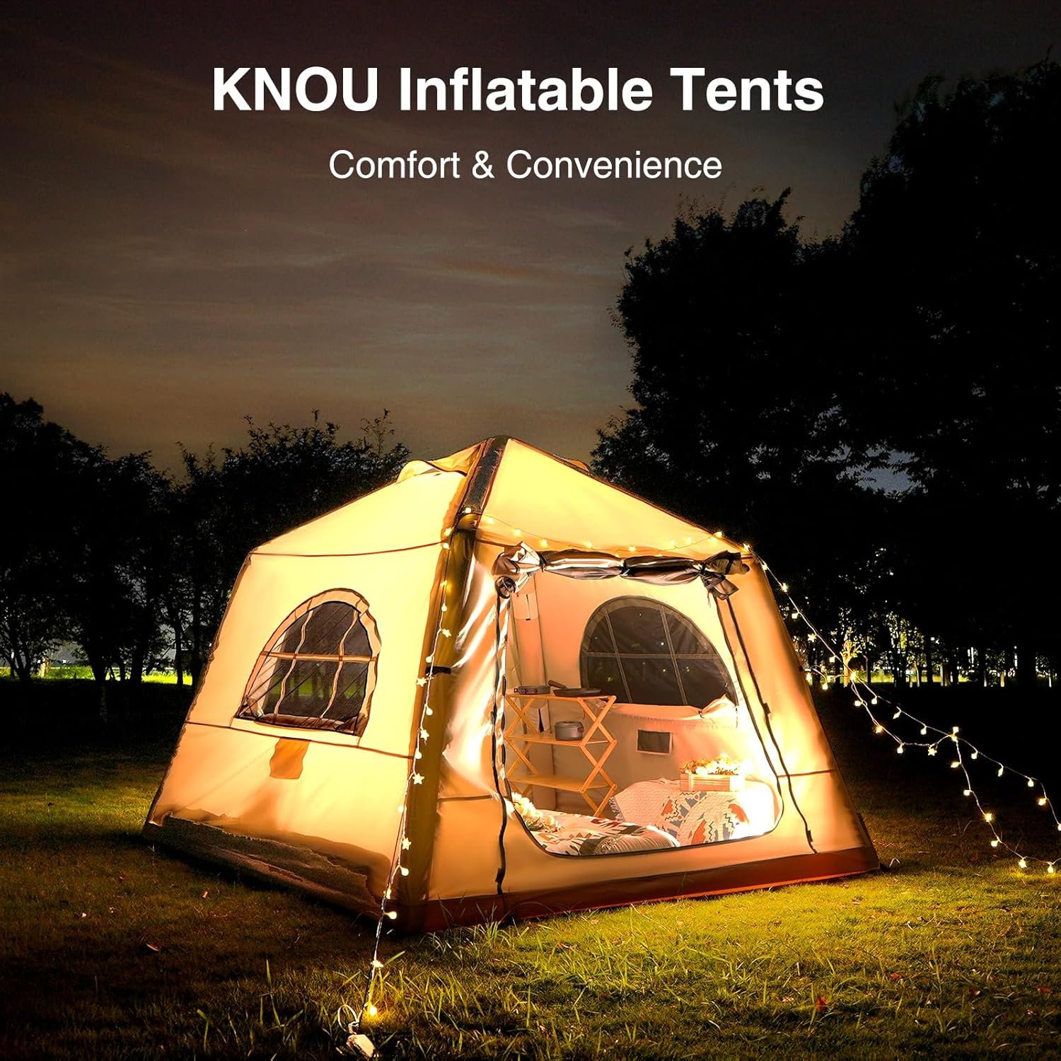 Durable 1680D Oxford for Ultimate Waterproof Protection: KNUO air tent is built to outdoor camping, offering superior waterproofing and UV protection to keep you dry and comfortable during your outdoor adventures