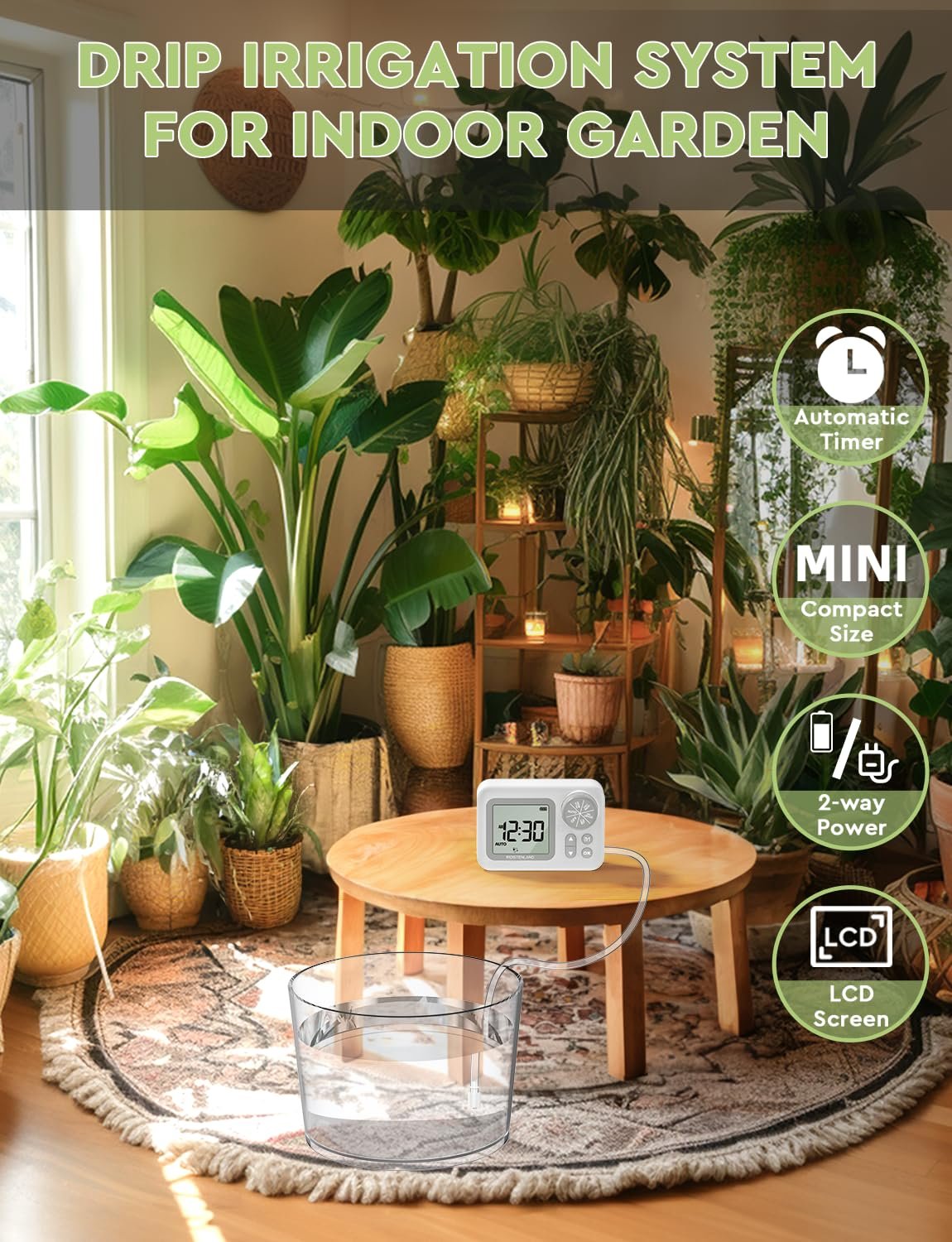 [2025 Upgraded] Automatic Drip Irrigation Kit, 15 Potted Indoor Houseplants Support, Indoor Automatic Watering System for Plants, with Digital Programmable Water Timer