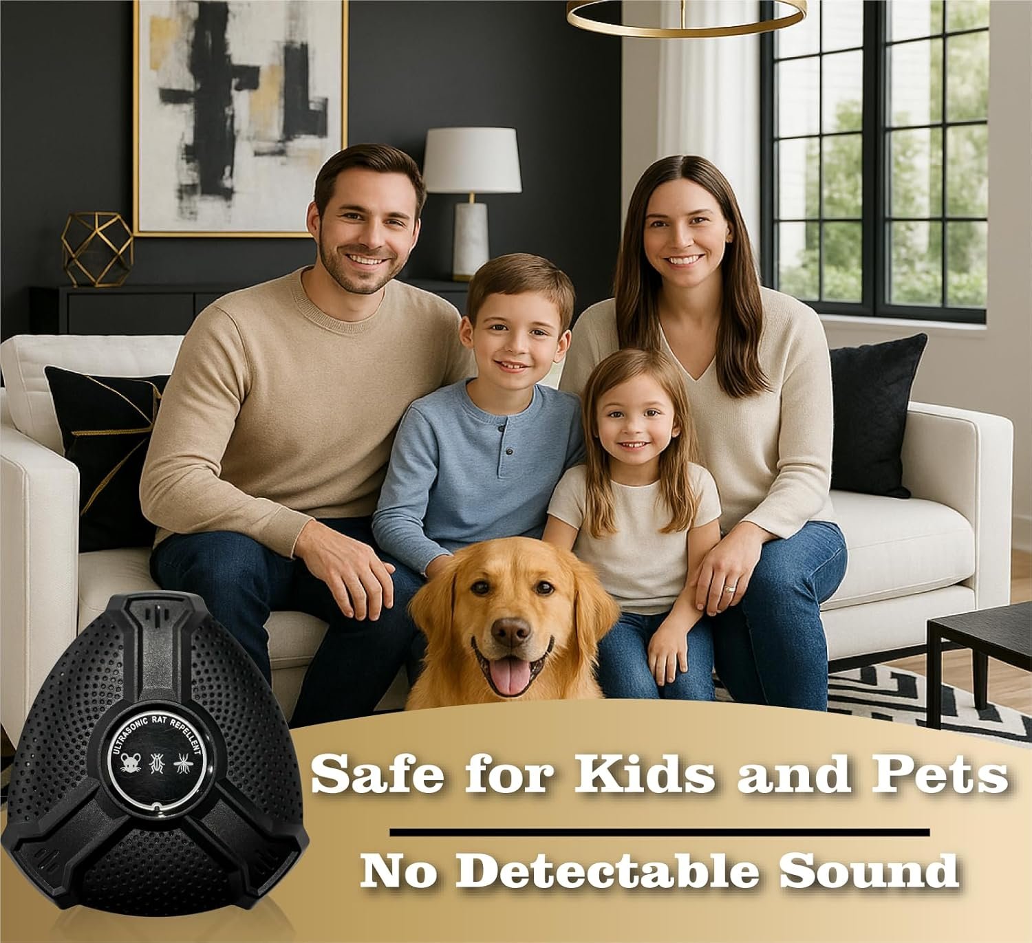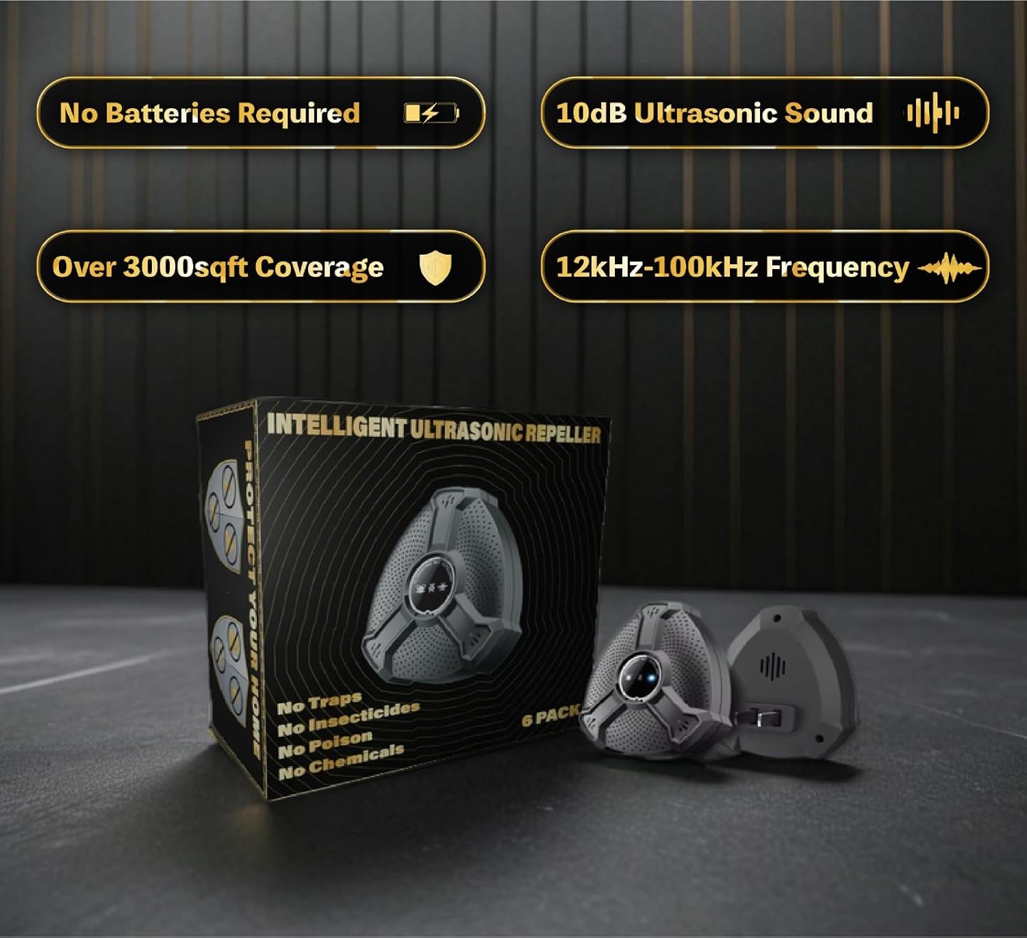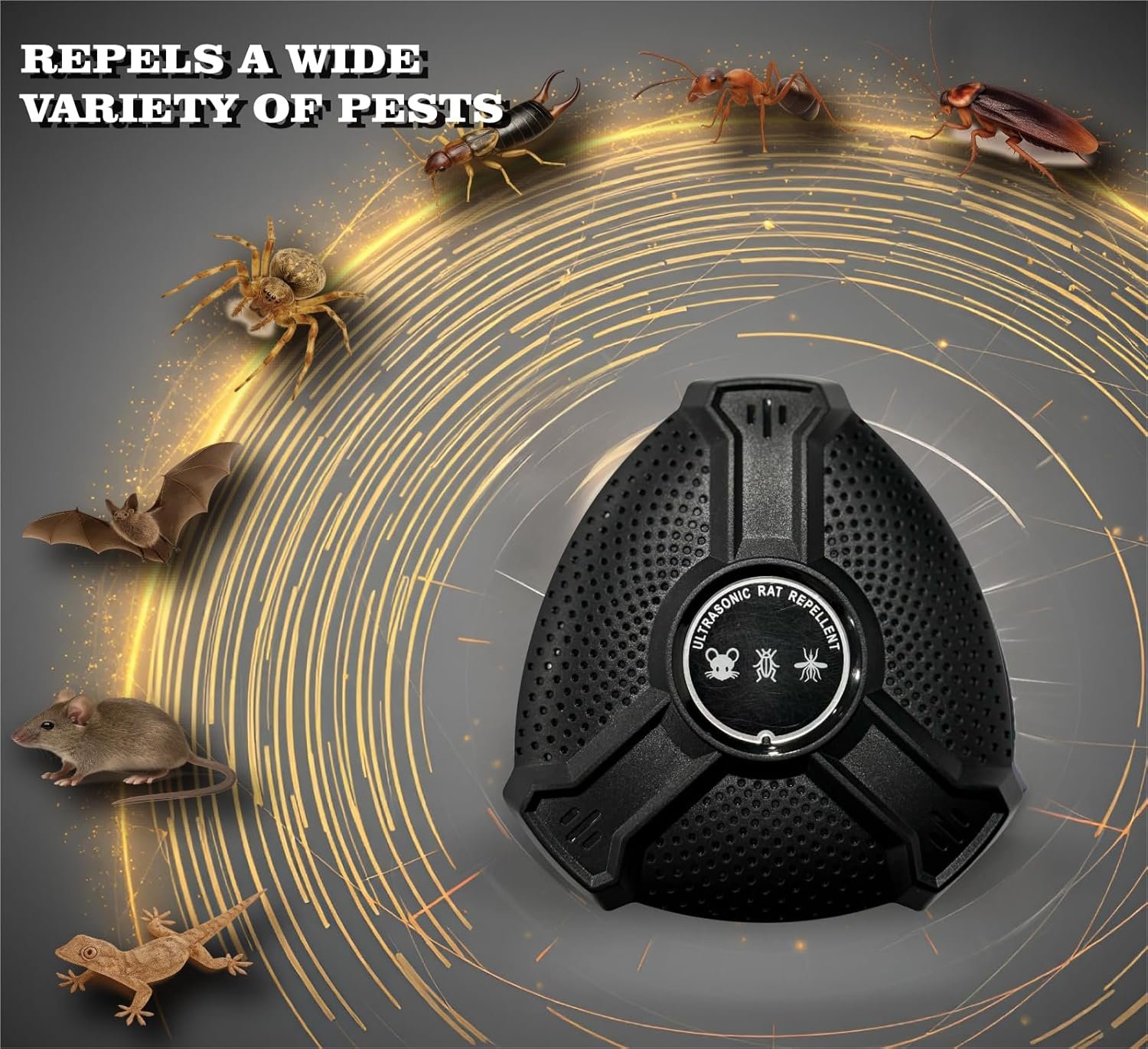 65-100kHz High Frequency Waves: Effectively repel insects like fleas, ticks, bedbugs, and mites using advanced high-frequency pest control.
