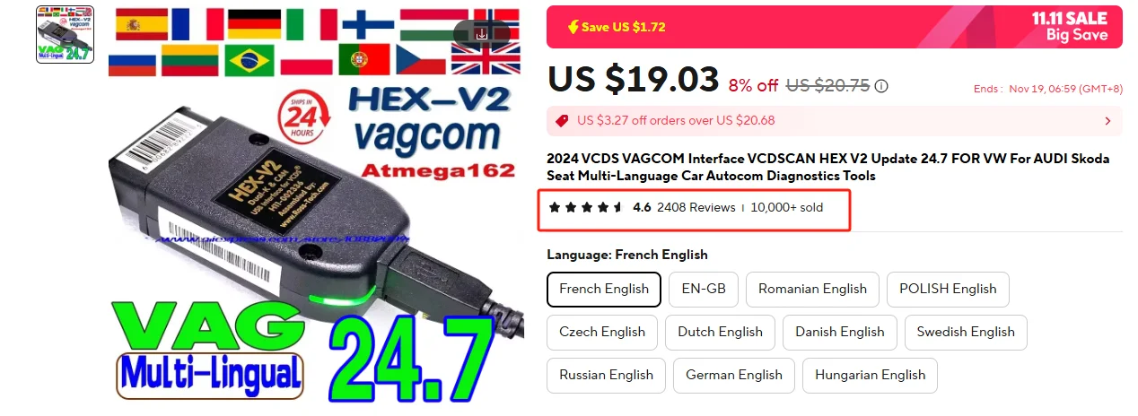 16 reviews for 2025 VCDS VAGCOM Interface VCDSCAN HEX V2 Update 25.3 FOR VW For AUDI Skoda Seat Multi-Language Car Autocom Diagnostics Tools