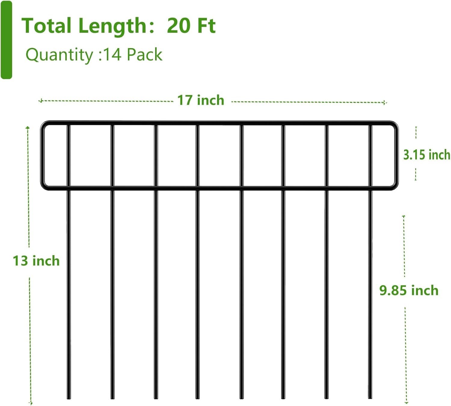 Longer Size: Good cost performance with longer fence. Each piece of the garden fence barrier is 17″ long and 13″ high, 14 panels. The entire length of the fence set is 20 feet long! More quantity, longer garden fence can more effectively prevent small animals from digging pass the fence to enter and leave the garden.