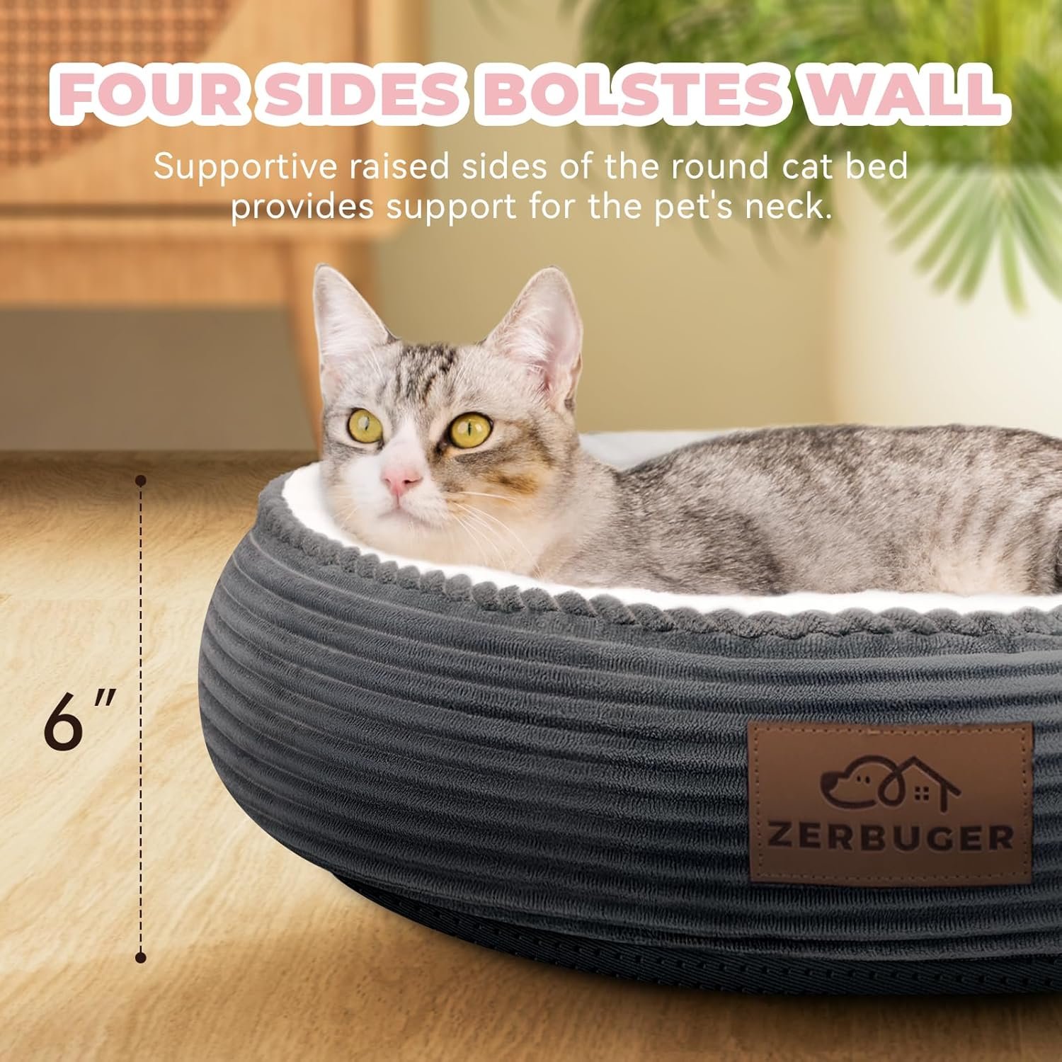 20in Washable Cat Beds for Indoor Cats – Round Donut Pet Bed for Cats, Small Dogs, Puppy, Kitten – Anti-Slip Bottom, Calming Bed Gift – Dark Grey