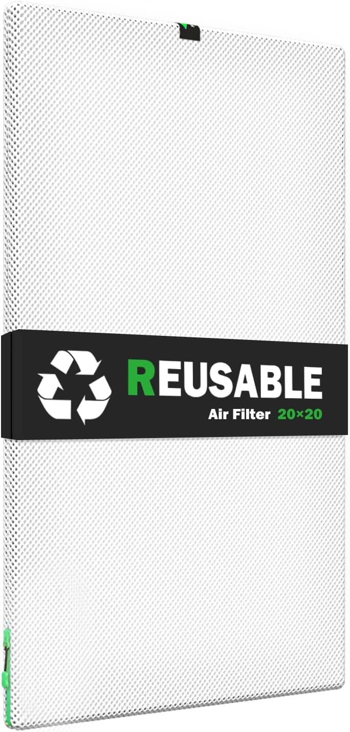 20x20x1 Air filter, Washable and Reusable Air Filter 20x20x1 for AC HVAC Furnace, MERV 8 Air Filters Machine Washable & Dryer Friendly, AC Furnace Air Filter