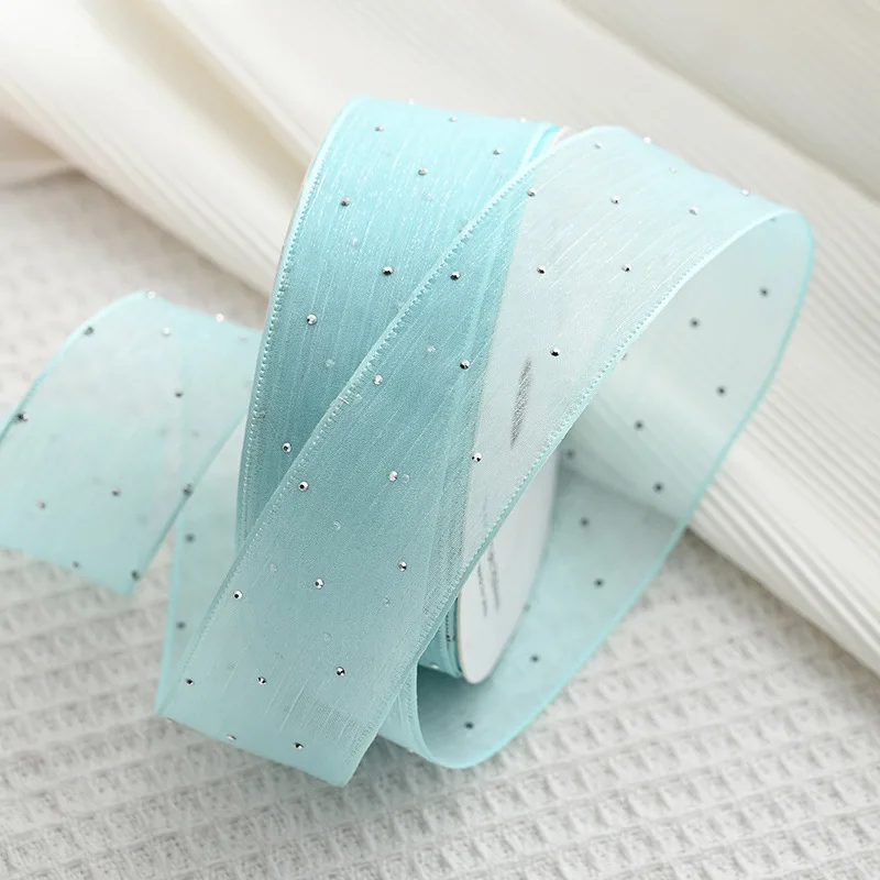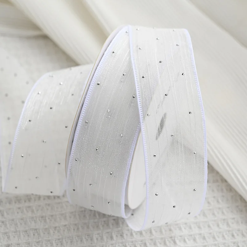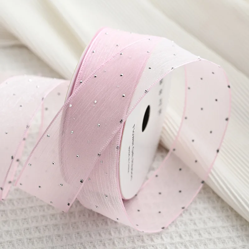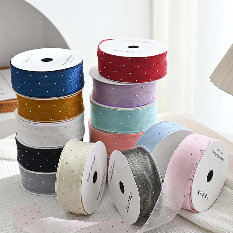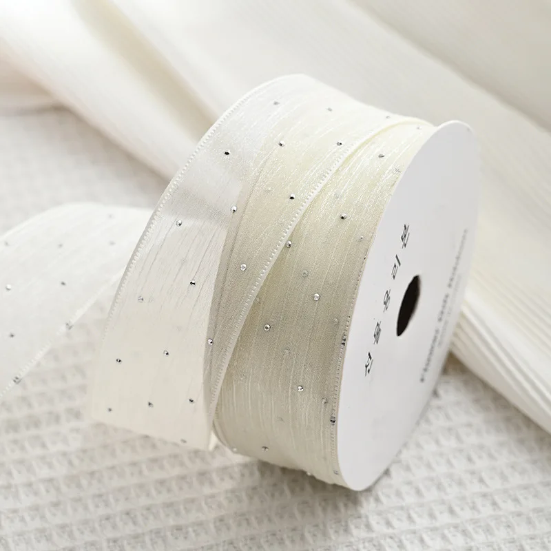 20Yards 4CM Silver Dots Wrinkled Yarn Ribbon Packaging Tape Flower Tied Gift Box Wrap Bow DIY Wedding Christmas Party Decoration