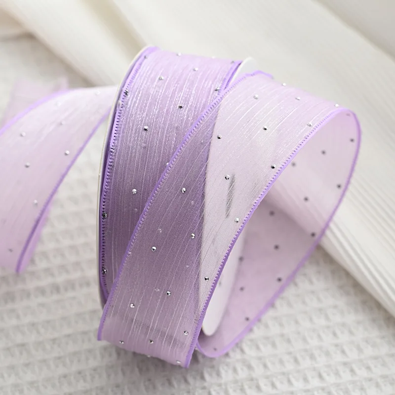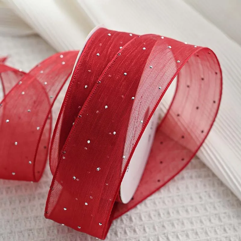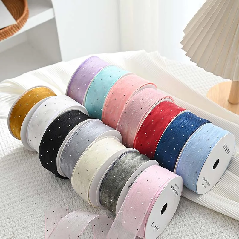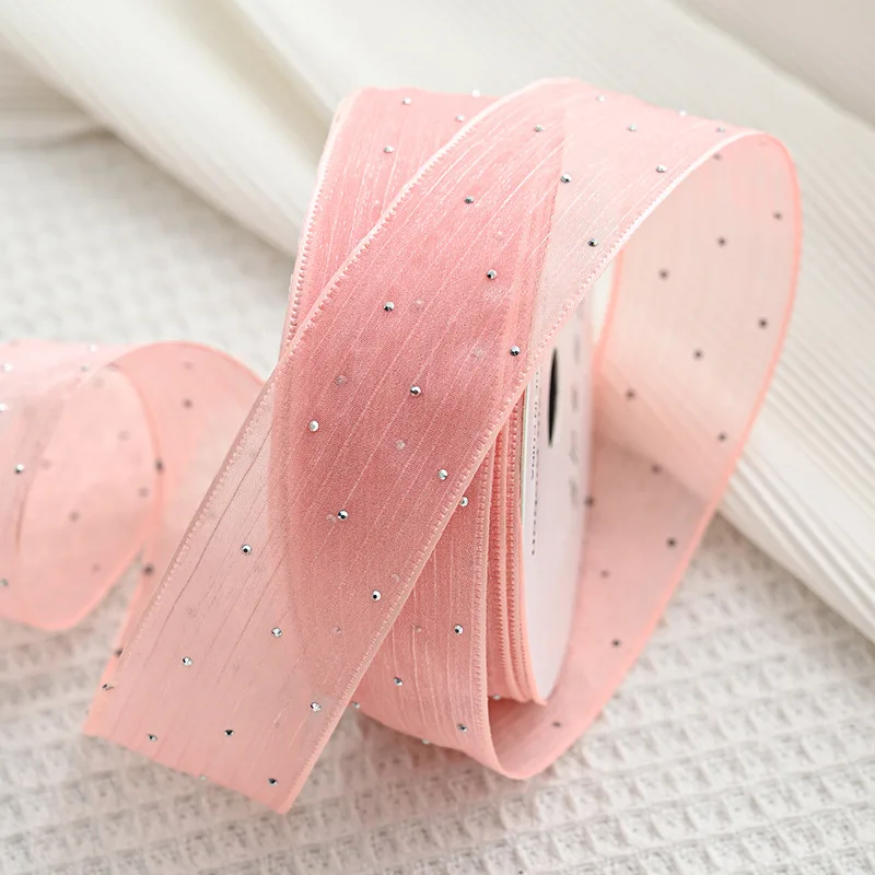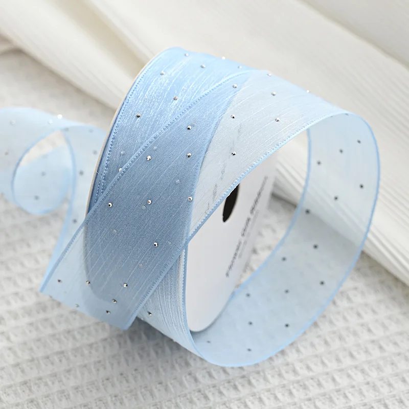 20Yards 4CM Silver Dots Wrinkled Yarn Ribbon Packaging Tape Flower Tied Gift Box Wrap Bow DIY Wedding Christmas Party Decoration