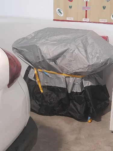 It came in a transparent plastic bag, inside a bag with the same colors as the case to be able to store it. It’s very good for once the BBQ is used, it doesn’t stay in the middle. For me, the texture is quite good for the price. It has a rope at the base to keep it tightly closed and not to fall apart. If it lasts a couple of years, it’s not bad.