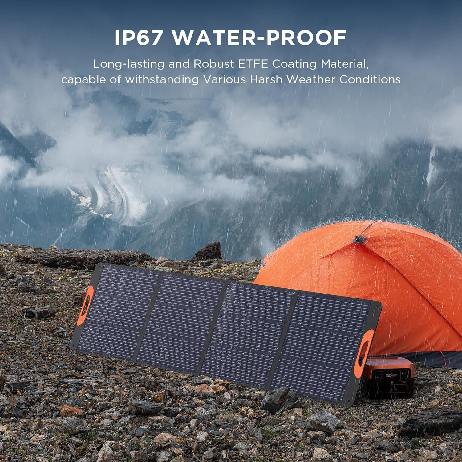 【IP67 Waterproof and Long-lasting】This panel solar portatil crafted with ETFE material, engineered to withstand tough environments.The portable solar charger is IP67 rated for water and dust resistance, and the integrated external pouch protects the controller during use. Whether under rain or wind, the 220W solar panel is built for long-term outdoor use,very suitable for use as survival gear and supplies.However, the controller itself is not waterproof—please don’t soak it into water