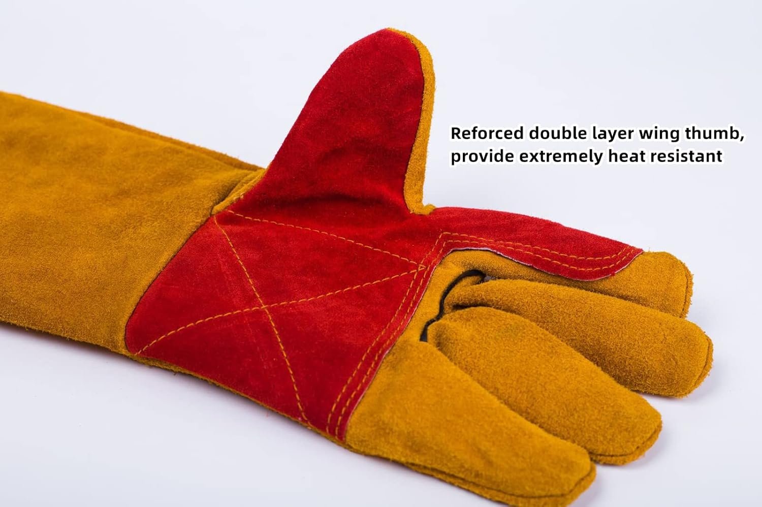 23.6 Inch Leather Long Sleeves Welding Safety Gloves Heat Resistant Fireplace Gloves.