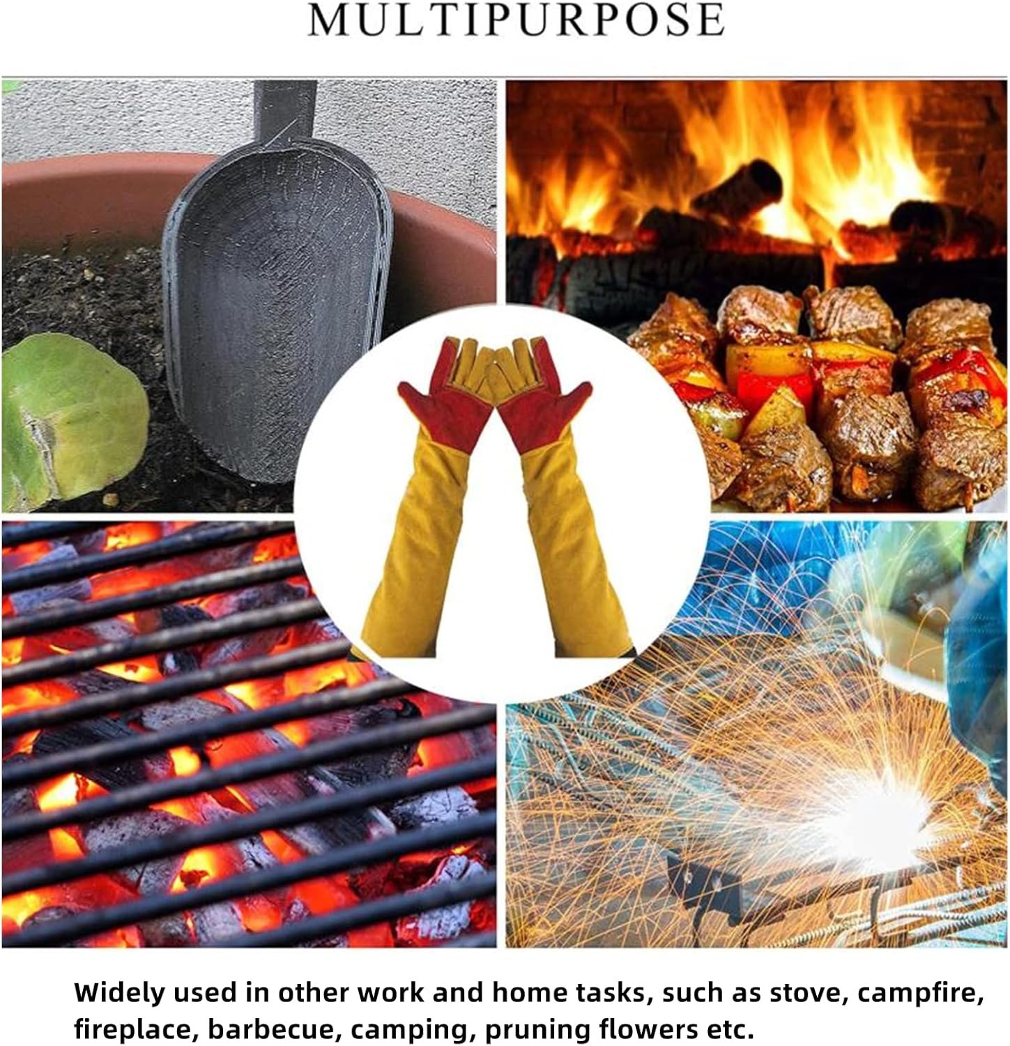 23.6 Inch Long Sleeves Welding Gloves for Men, Heat/Fire Resistant Leather gloves for Mig,Tig,Forge,BBQ,Grill,Fireplace, Puncture Resistant Welder Gloves for Garden and Animal Handling