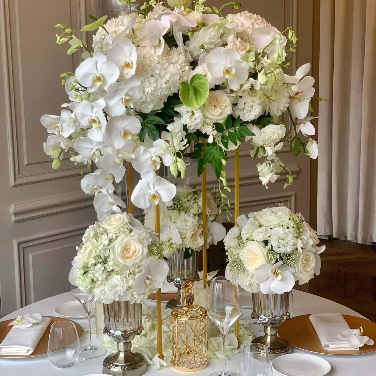 Simple and luxurious design, graceful geometric shapes and modern metallic finishes add instant glamour and modern romance. Decorate it with real flower or artificial flower. Decoration of special activities, events, partys, birthday, wedding…