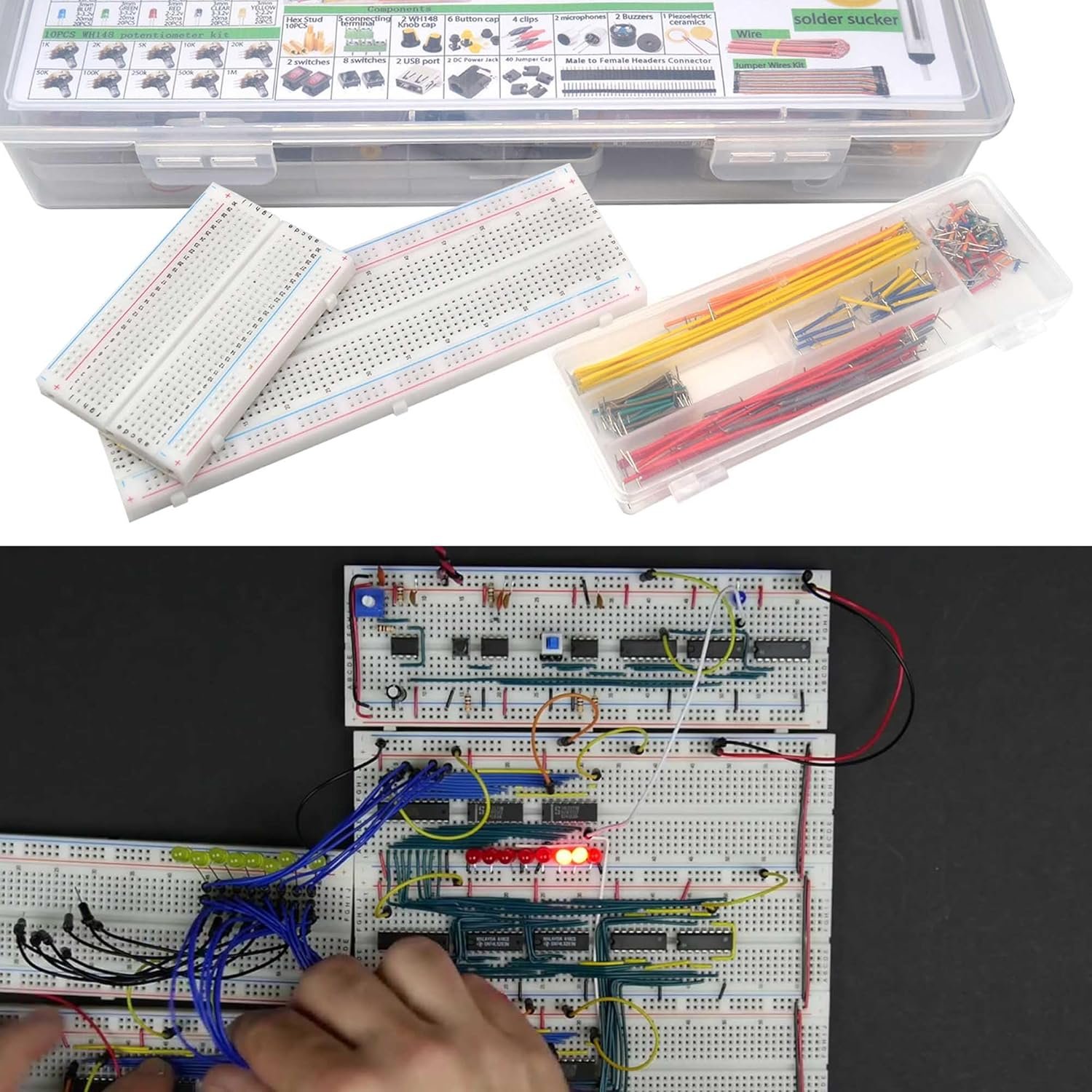 2300PCS XXXXL Complete Set DIY Electronics Component Assortment Box Kit,IC,Solder,Solder Sucker,PCB,Breadboard,Jumper Wire,Magnifying Glass,Resistors,Capacitors,LED,Triode,Potentiometer,Speakers