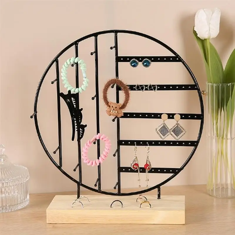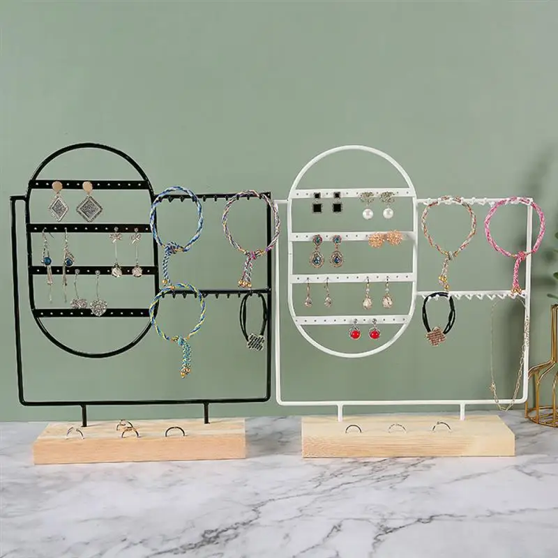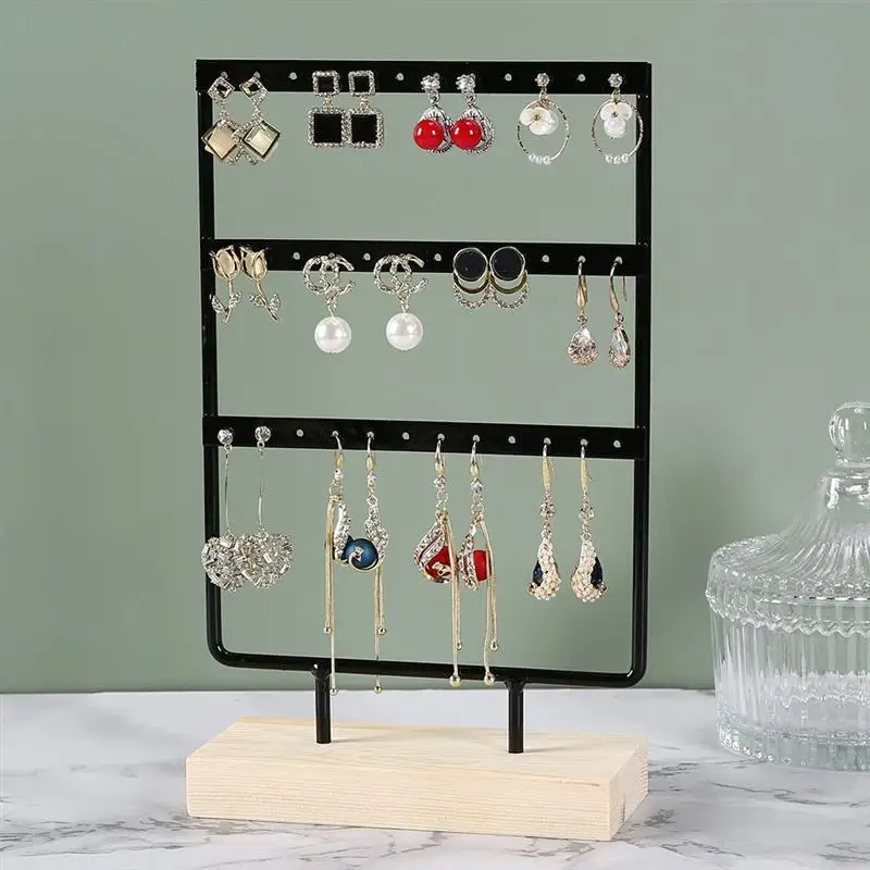 3 reviews for 24/44/66 Holes Stand Jewelry Display Organizer Earrings Pendants Bracelets Jewelry Holder With Wooden Base Earrings Storage Rack