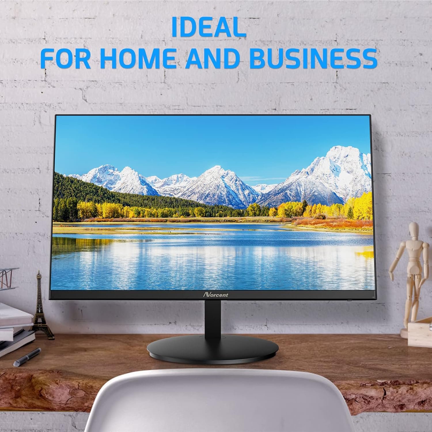24 Inch Computer Frameless Monitor, 75Hz Full HD 1920 x 1080P IPS LED Display, HDMI VGA Port, 178 Degree Viewing Angle Blue Light Filter Function, 100x100mm VESA Mountable, MN24-H