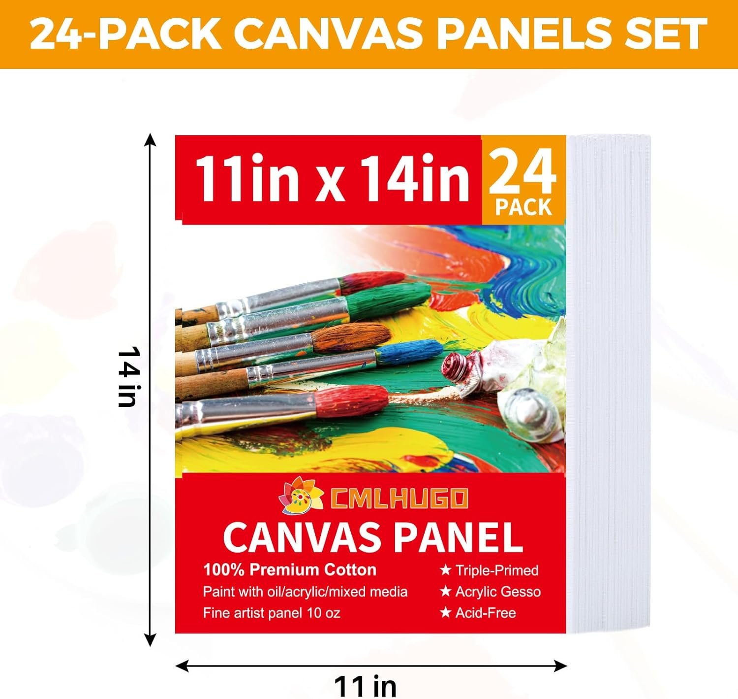 24 Packs 11×14 Blank Boards for Painting Kids, Art Canvases for Painting,Primed Acid-Free 100% Cotton Canvas Panels for Acrylic Oil Watercolor