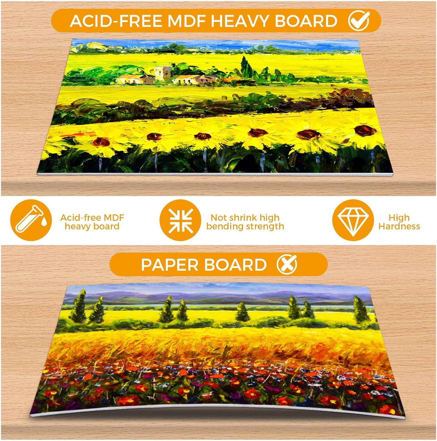 【Sturdy Support】 Experience superior stability with high-quality MDF boards backing of our canvas for painting. Unlike traditional painting paper, this sturdy construction prevents warping and ensures a smooth painting surface, perfect for art novices exploring different painting techniques.