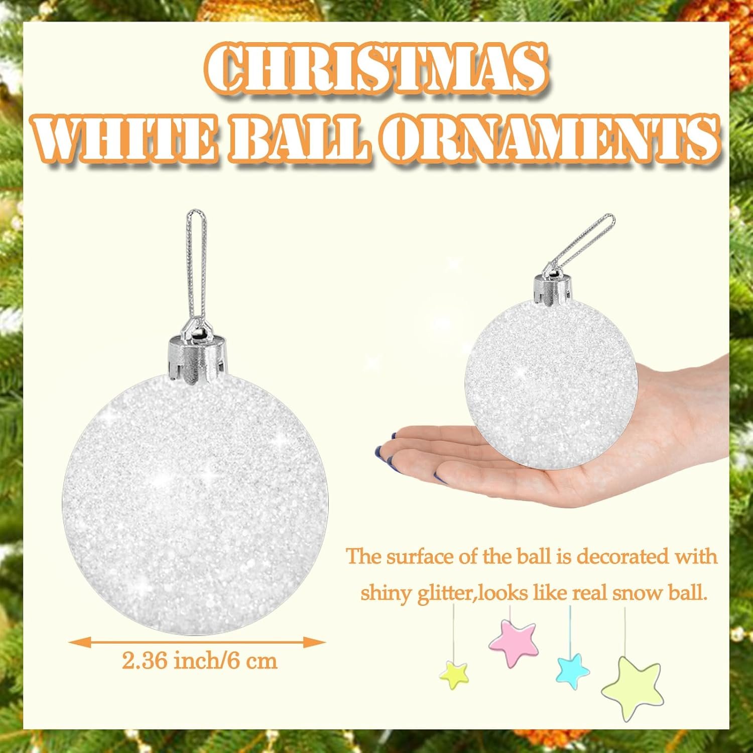 🎄Package Included:24 Pcs bulk Christmas white ball ornaments,sufficient quantities will fully meet your Christams decoration needs.