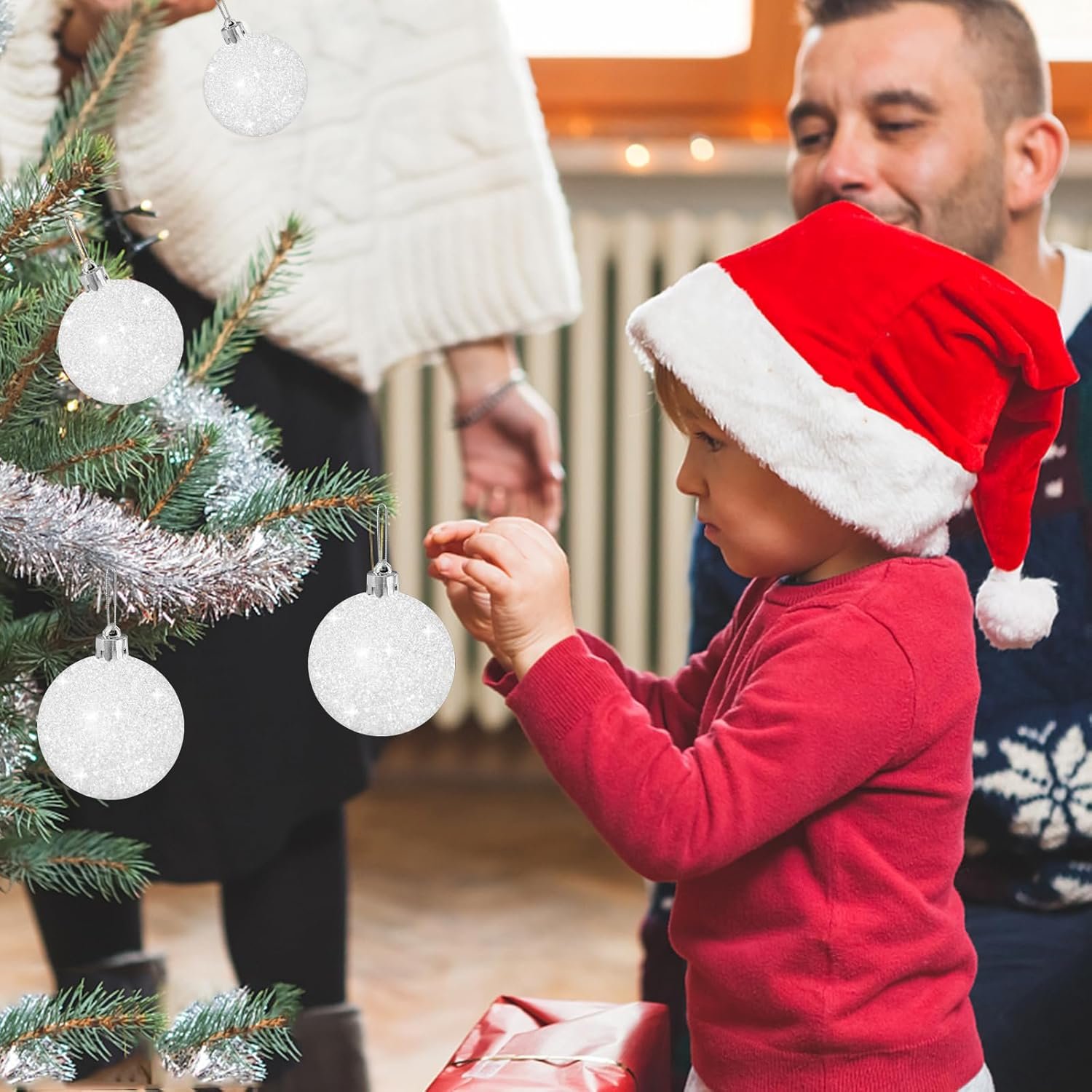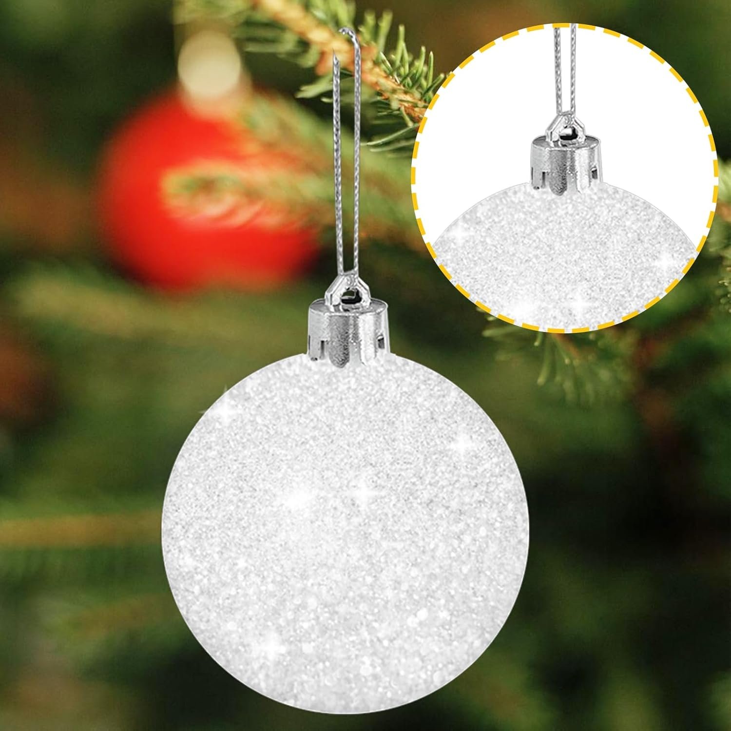 24 Pcs Christmas decorative balls,enough for your Christmas decoration needs.These white flash balls are made of plastic,lightweight and durable,with flash sequins on the surface.Each ball diameter is about 2.36 inches (60mm).You can used for many festivals decoration.
