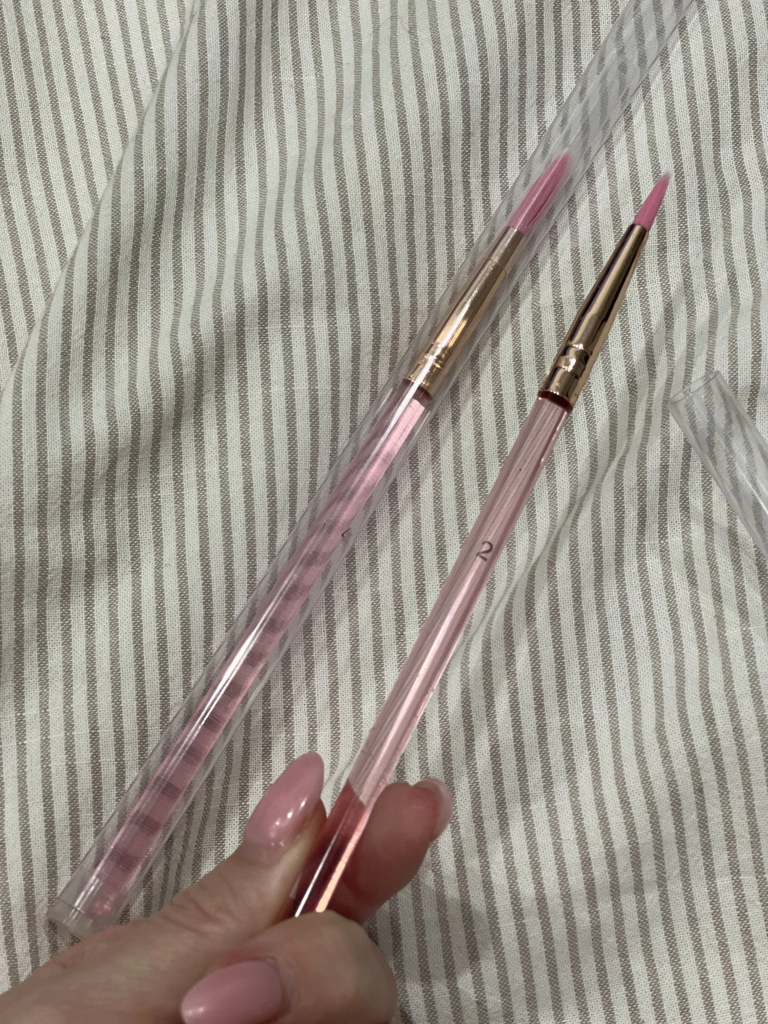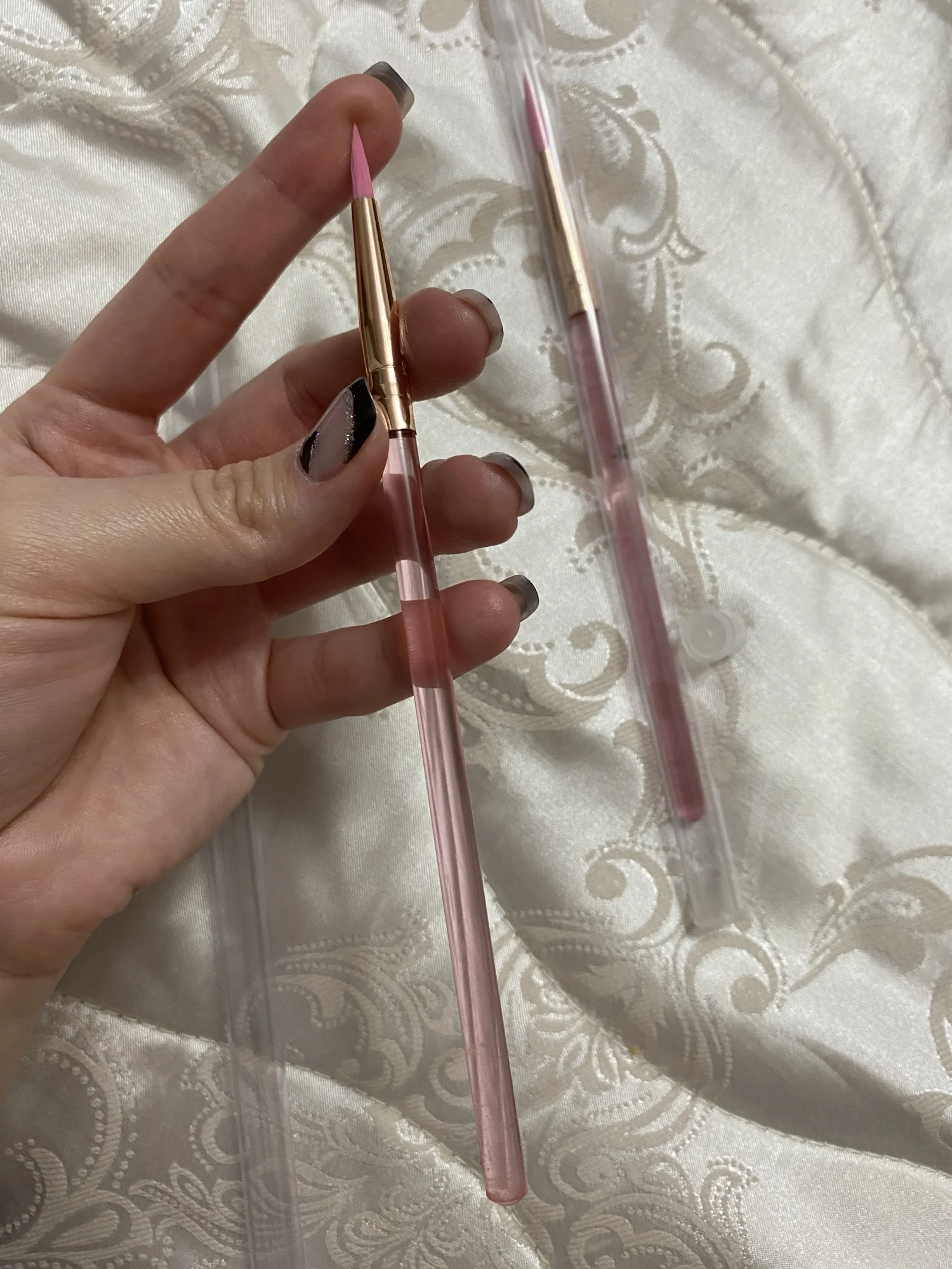 The brush itself is good, but it is very upset that the case is gold. in the video, the seller has a pink color