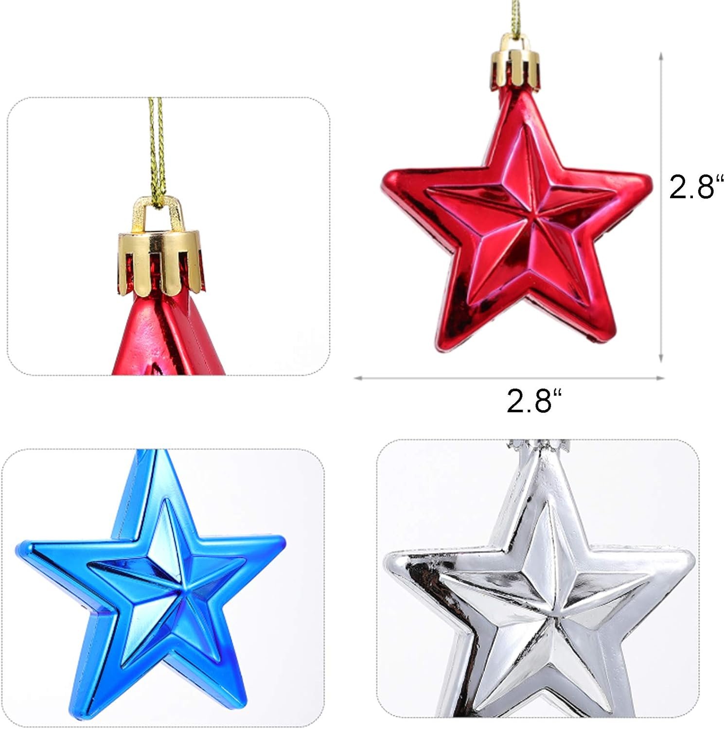 4th of july ornaments are made of durable plastic and electroplated with shiny colors, the three-dimensional design makes the stars distinct, reflecting the aesthetics of light and shadow. Measures approx. 2.76, serviceable to be applied for multiple times.
