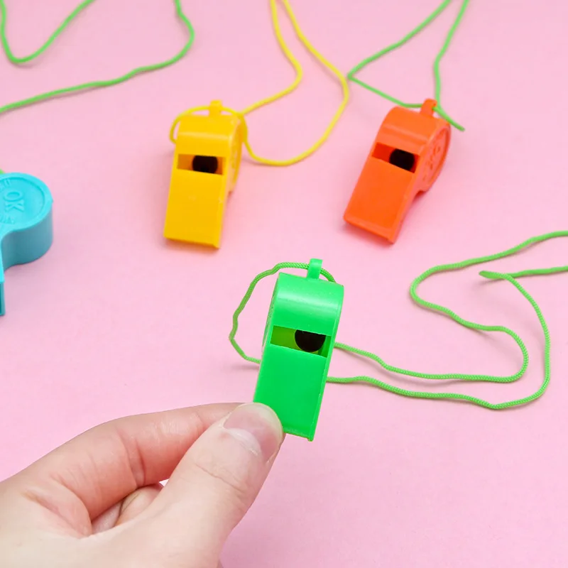 24pcs Plastic Whistle Multifunction with Rope Kids Football Soccer Rugby Cheerleading Whistle Children Toys Birthday Party Gifts