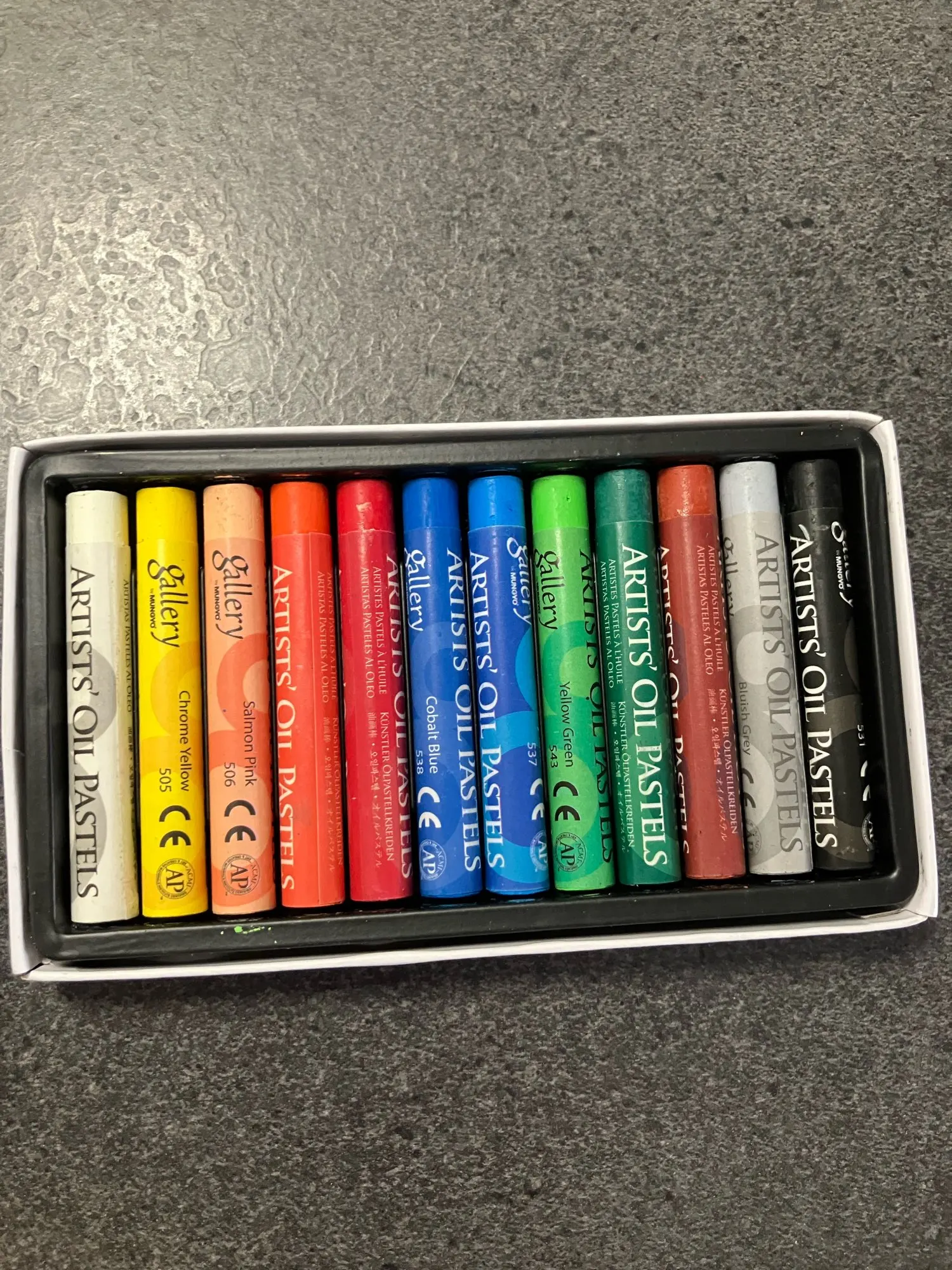 Fine and rich pigments, homogeneous, allow for mixing. Thank you