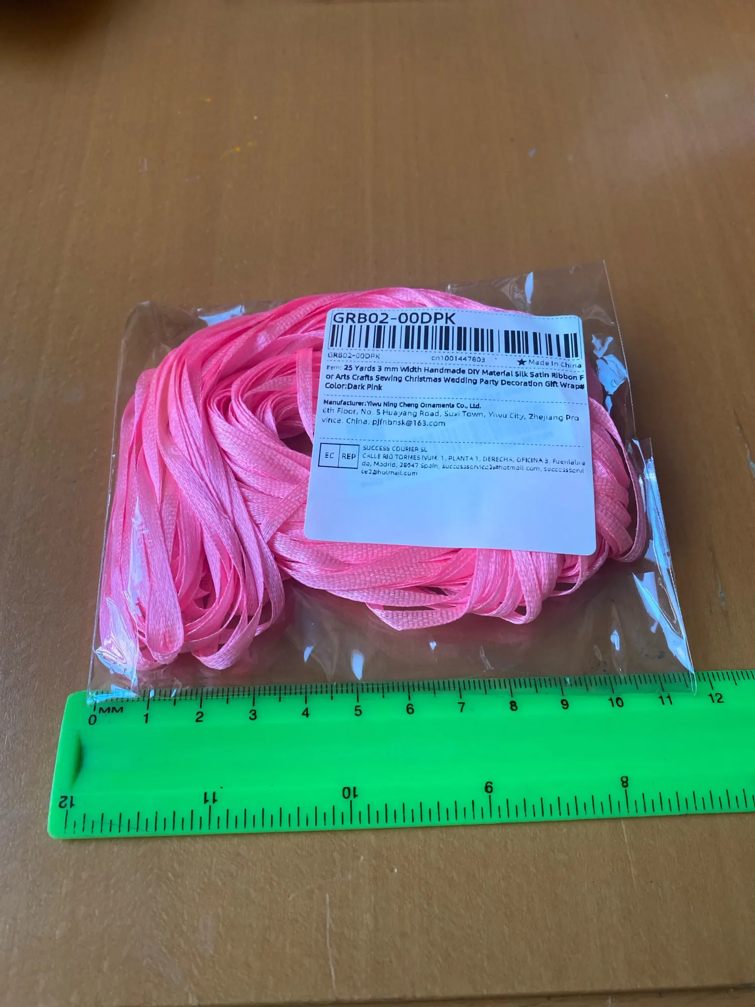 I didn’t like the fuchsia color; it’s not like in the photo, it looks like the pink one in the picture. One issue: it doesn’t come rolled up in cardboard and you have to roll the ribbon yourself to prevent knots.