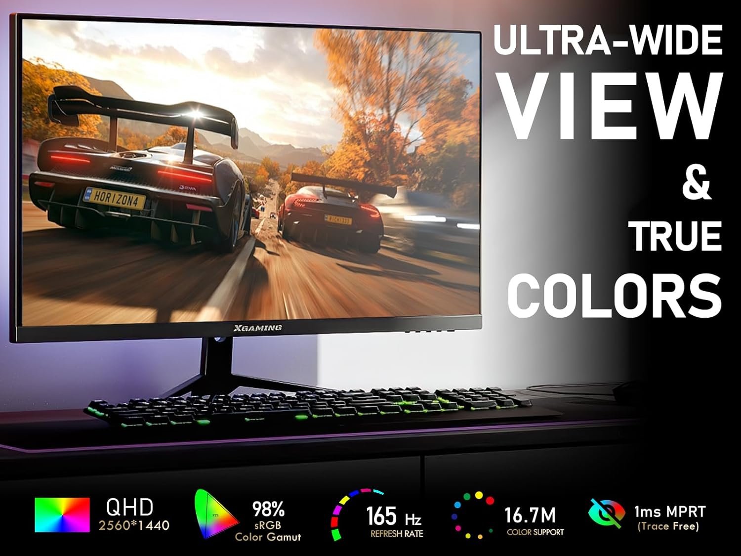 High-End Monitor — XGaming 27-inch Gaming Monitor with 2K QHD (Quad High Definition) 2560×1440 resolution, 165Hz refresh rate and 1ms (MPRT) response time delivers all of benefits of IPS (In-Plane Switching) display. Its dynamic contrast ensures vivid and accurate color representation in lighter and darker areas, offer immersive gaming experiences. Aspect ratio is 16:9