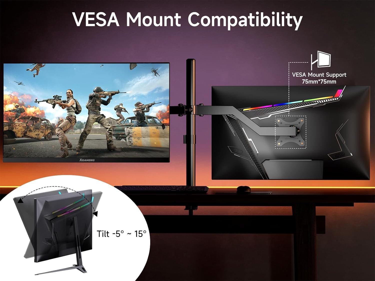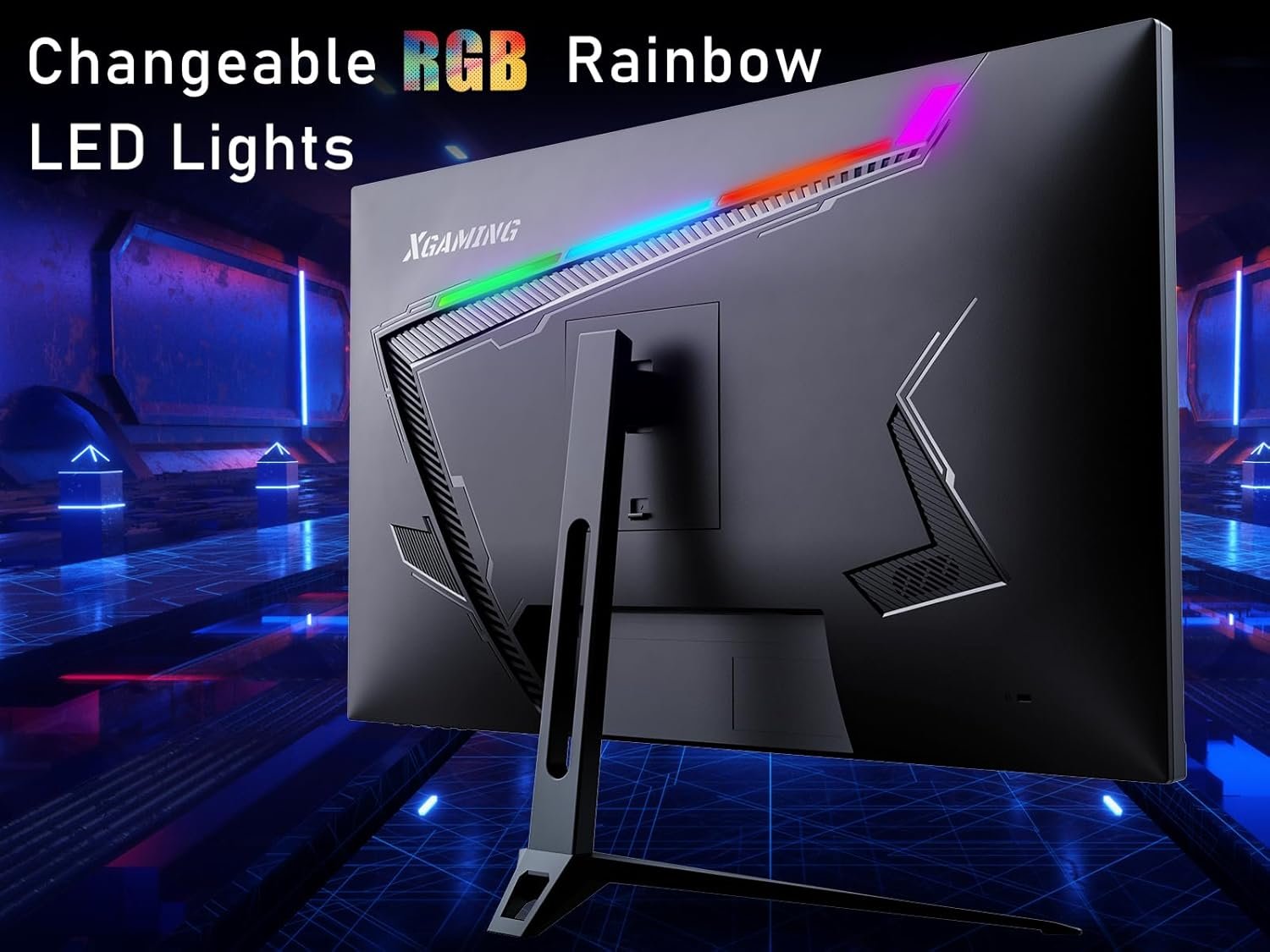 Sleek & Modern Design — XGaming 27-inch PC Monitor comes with ultra-thin frame with 3 sides and stable V-shaped metal base, it not only enhances monitor’s three-dimensional visual impact, but also provides excellent gaming stability.A wide range of -5-degree to 15-degree tilt adjustment allows you to maximize your viewing comfort. LED Rainbow Lights bringing you into a whole new gaming world