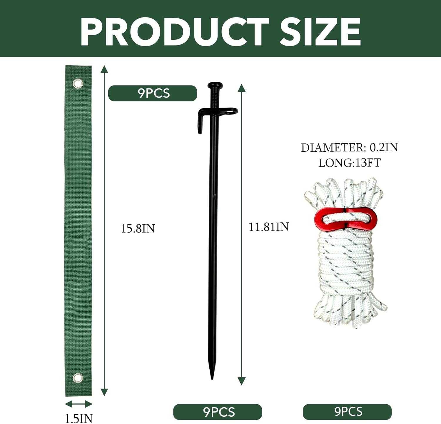 【27 PCS Perfect Kit】The tree straightening kit consists of 9PCS tree ribbons, 9PCS steel tree piles and 9 bundles of 13 FT nylon rope. The number and structure of our heavy duty steel tree stakes are very complete and contain the necessary accessories for each step.