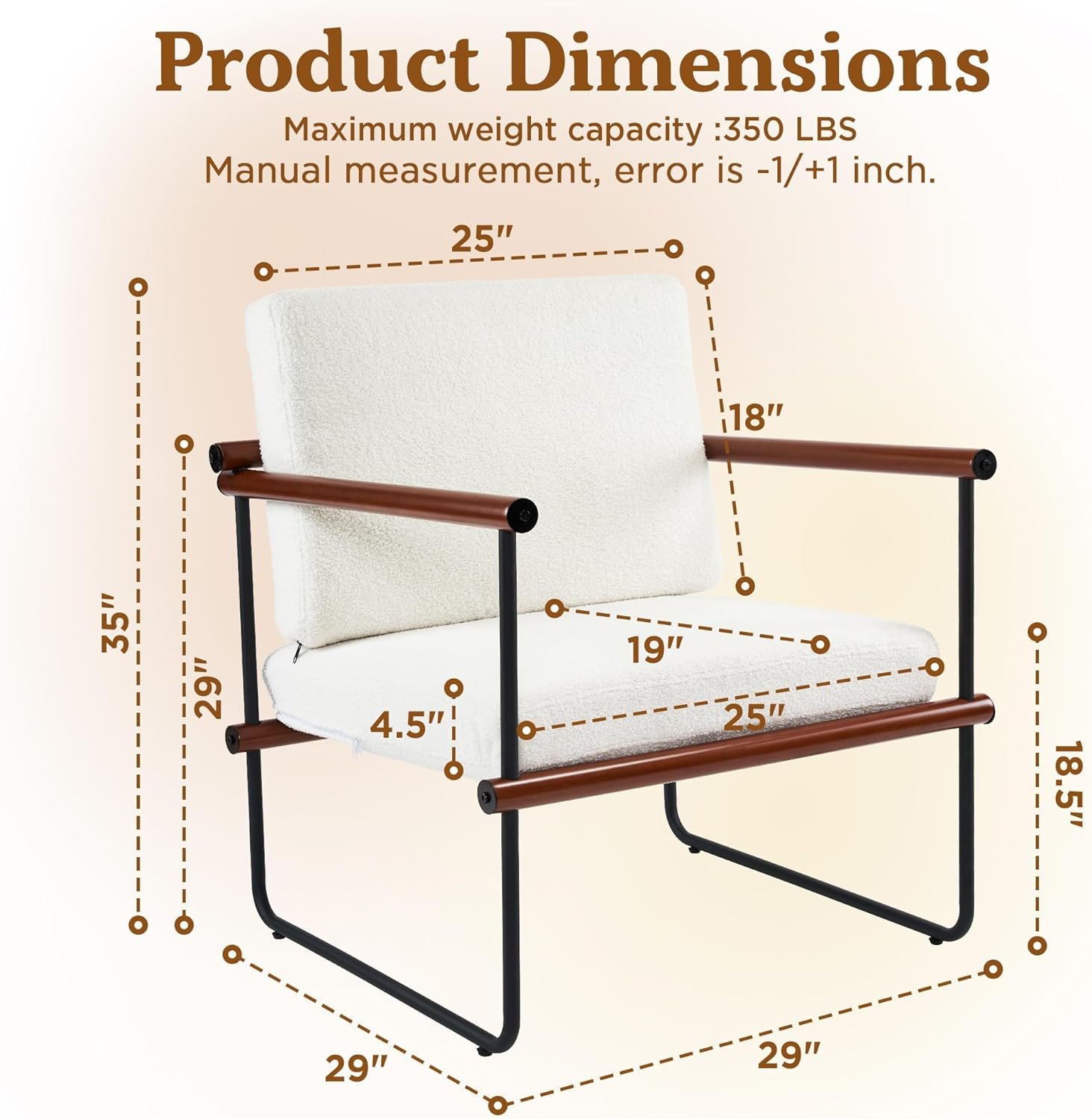 【350LBS WEIGHT CAPACITY】 Enjoy stability and durability with this living room chair, boasting a solid metal frame and wooden-wrapped armrests for enhanced comfort and safety. With a weight capacity of up to 350 pounds, rest assured of its long-lasting service,