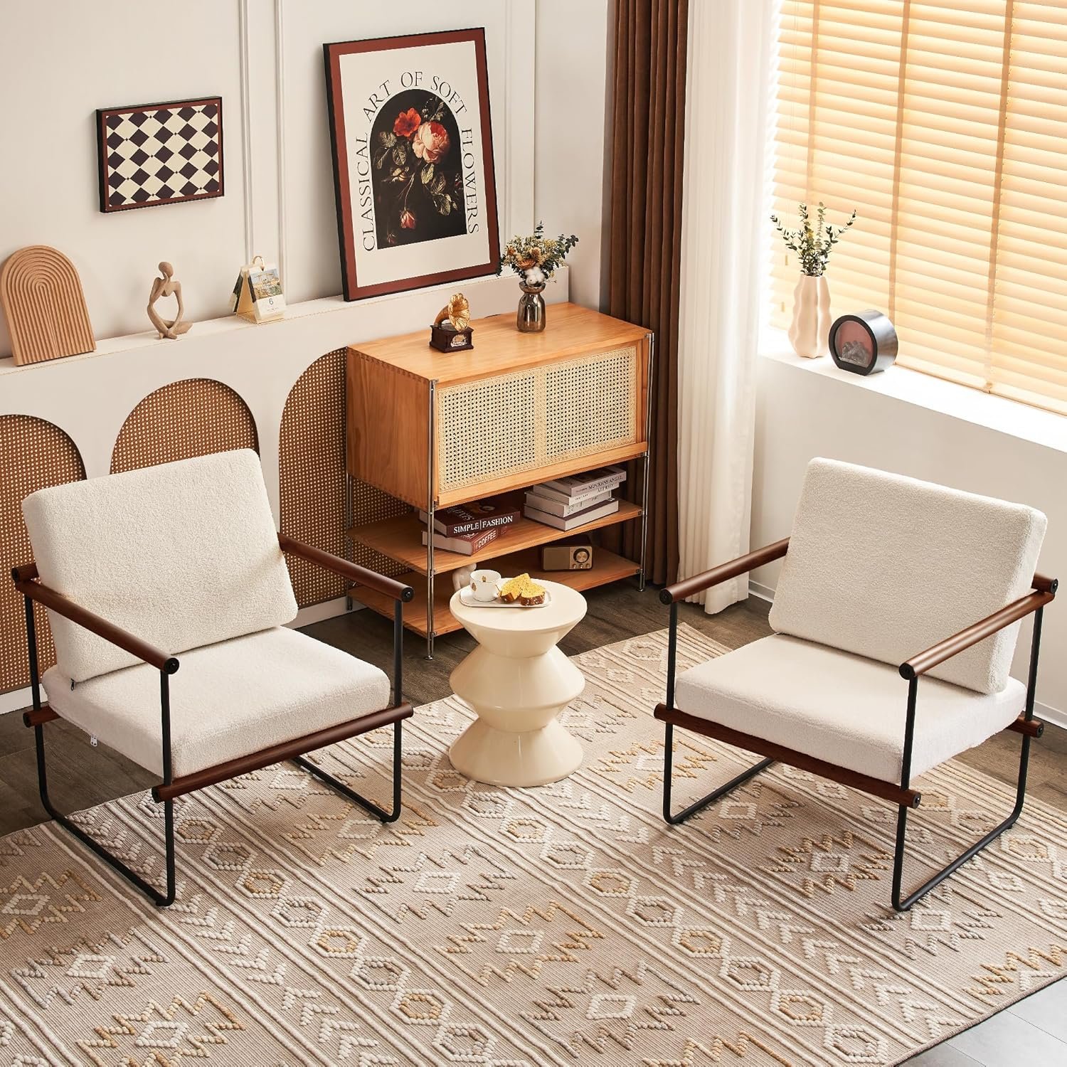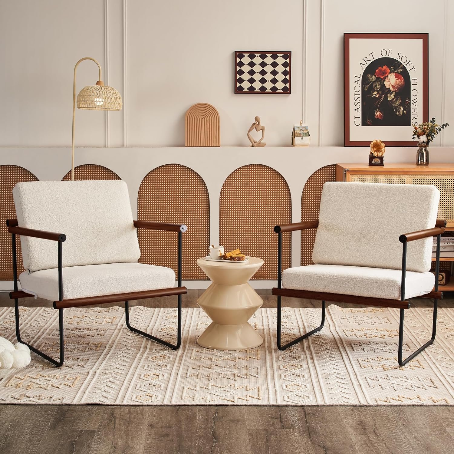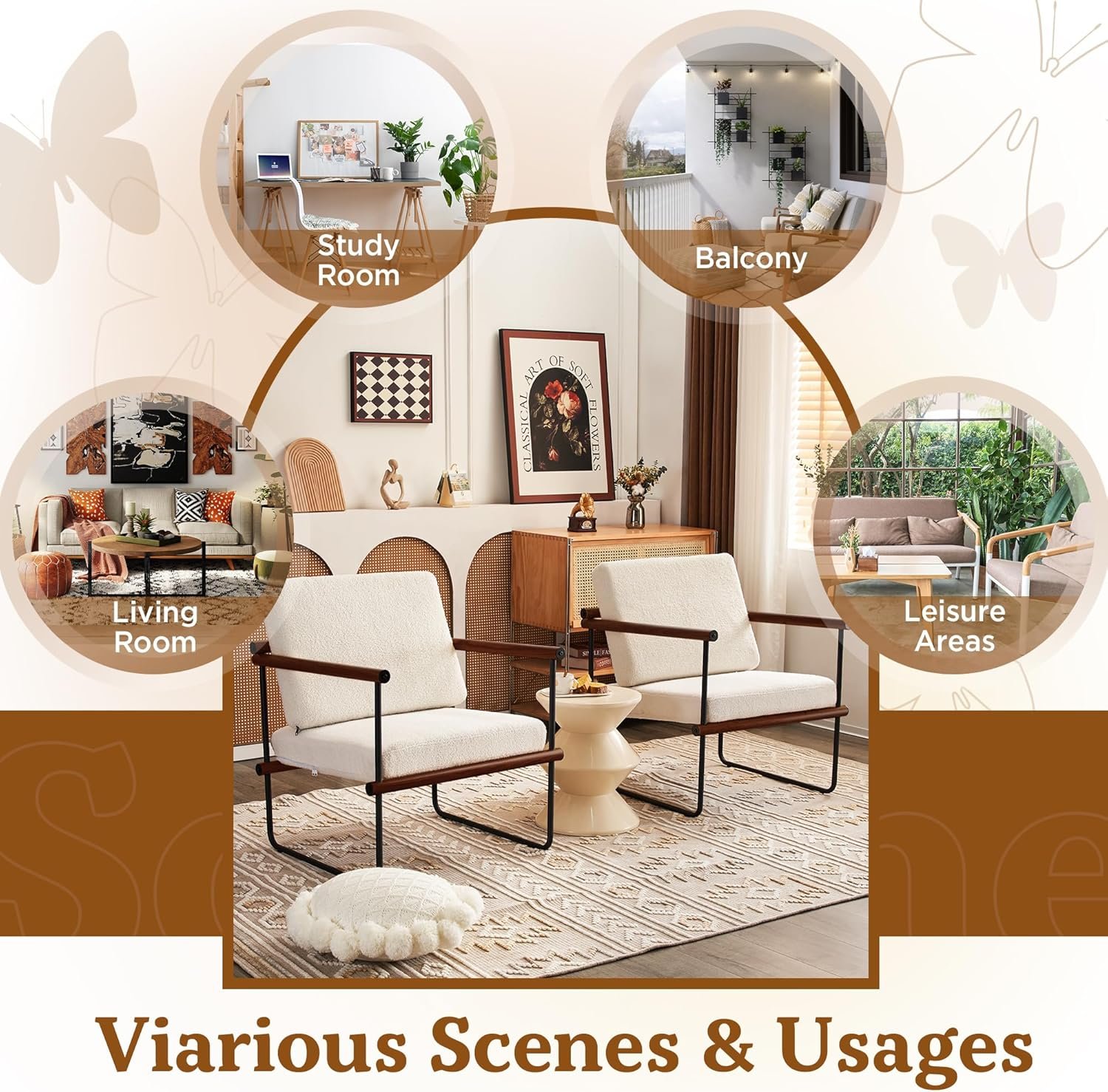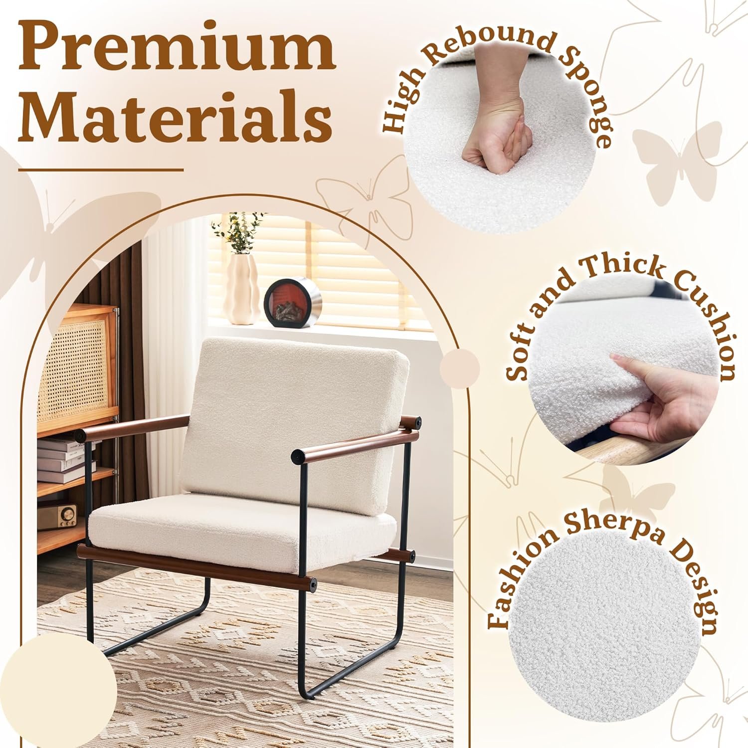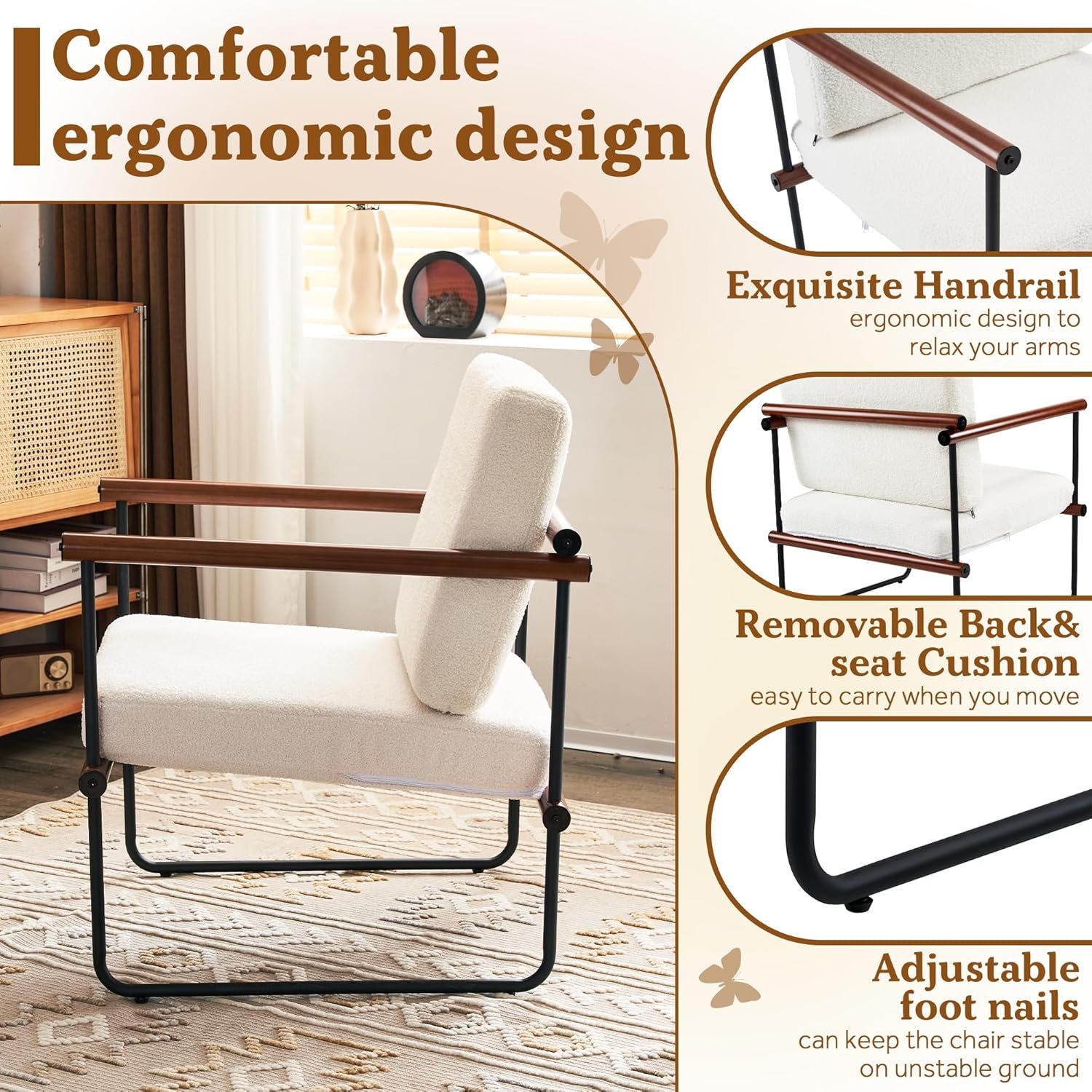 【PREMIUM BOUCLE FABRIC】Immerse yourself in modern elegance with our living room chair, enveloped in preimum boucle fabric for a soft and luxurious feel. Its sleek lines and steel frame effortlessly complement any home decor, whether in the living room, bedroom, balcony, porch, or any preferred space,