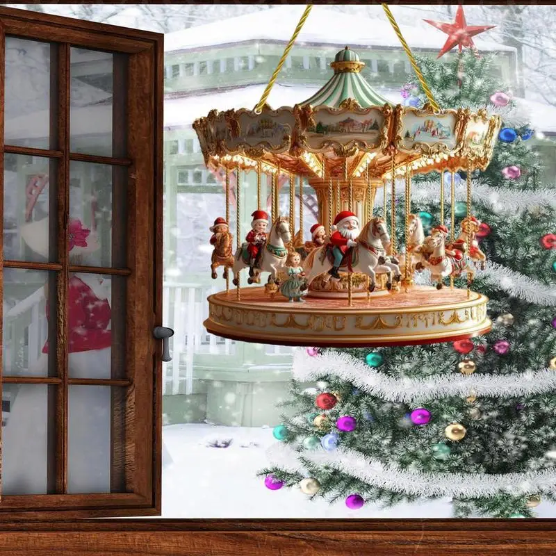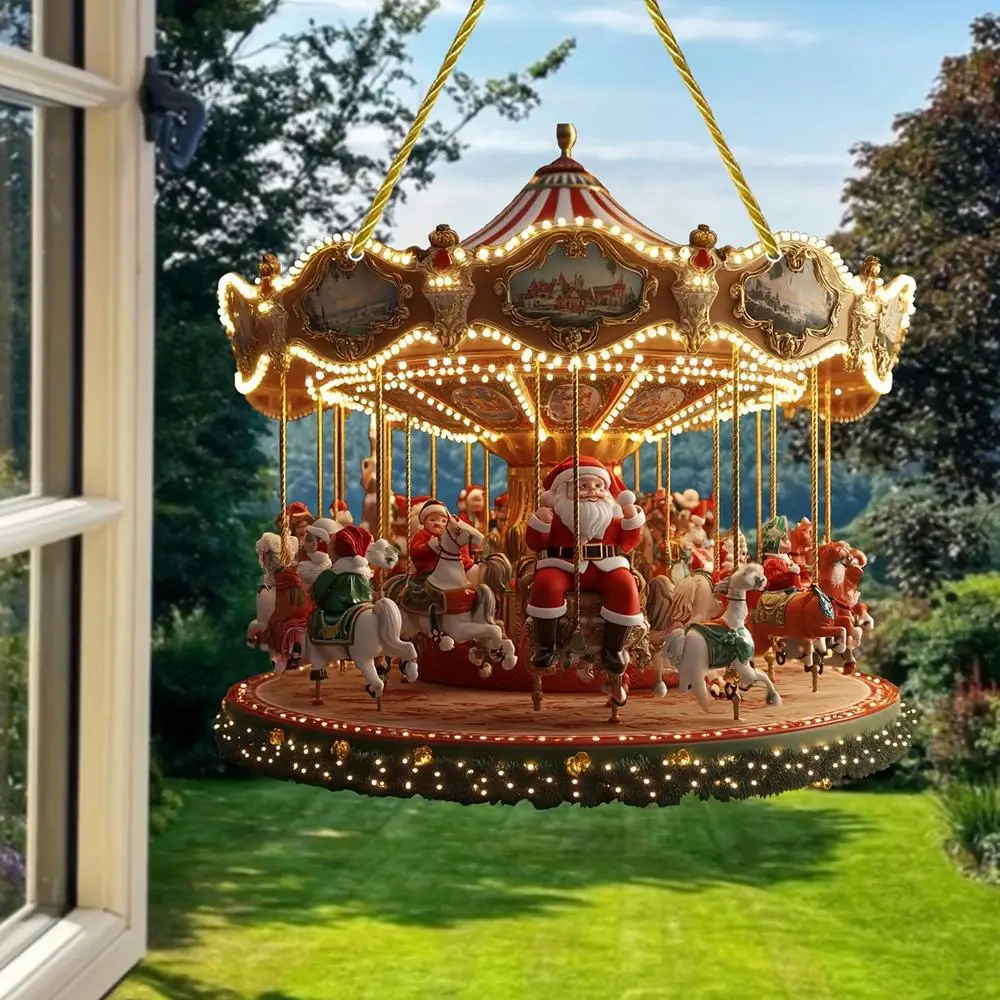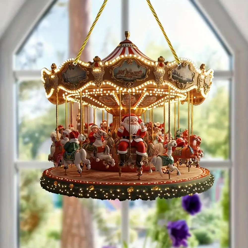 2.Acrylic Material: Bring a touch of charm to your holiday with the Santa Carousel 2D Ornament, crafted from acrylic material for a dependable and long service life