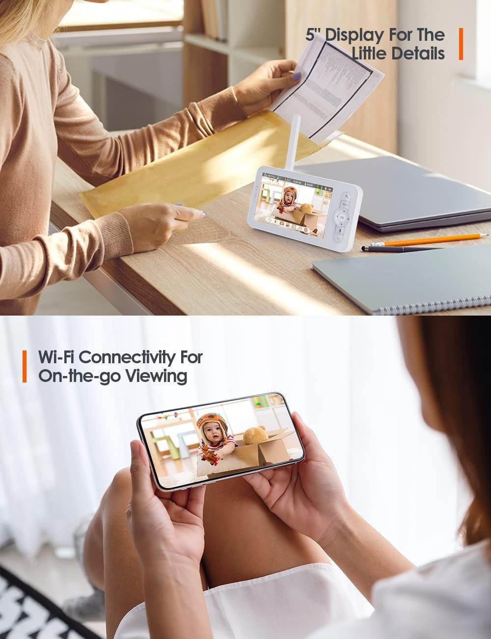 Say goodbye to the limitations of traditional baby monitors. Whether you’re in the kitchen, living room, or even the yard, you can rest assured that you won’t miss a single moment of your baby’s precious development.