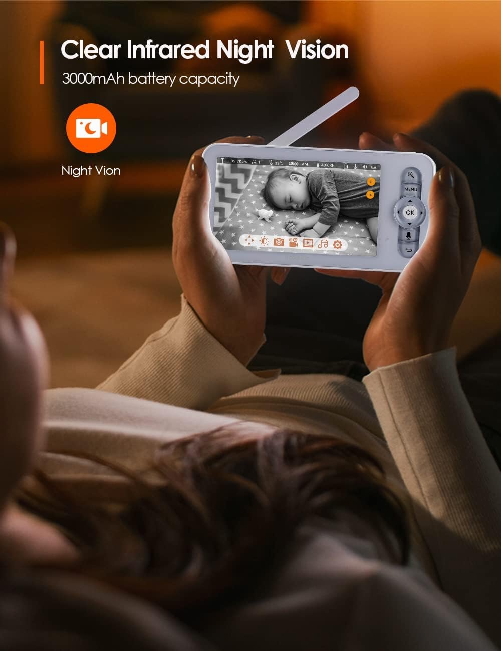 【Peace of Mind, Day & Night】 Equipped with FHSS encryption technology, the Baby Monitor ensures that your video feed is private and secure. Plus, with infrared night vision, you’ll have a clear view of your baby, even in complete darkness.