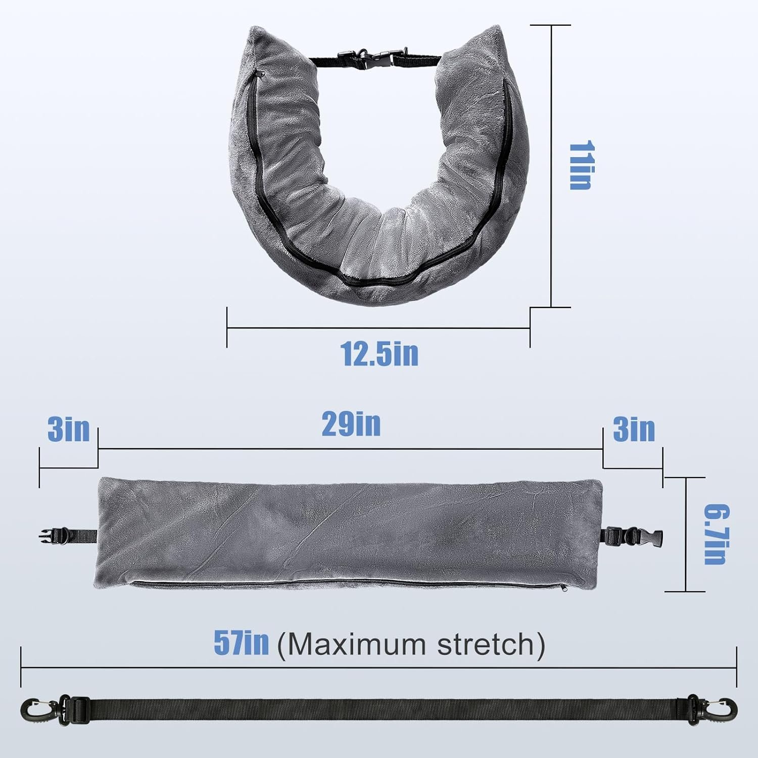 【Long zipper closure on travel neck pillow storage bag】 get rid of the short zipper and trouble, Stuffable travel pillow zippered features a discreet side zipper, large enough to easily place items into,Size while flat is approx 7″ wide x 31″ long