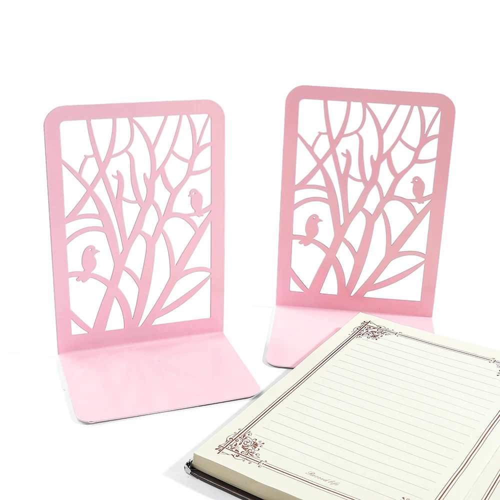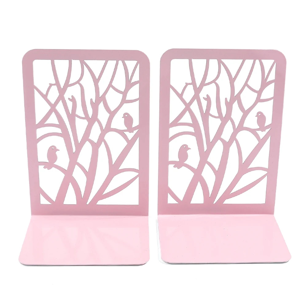 2Pcs/1Set Romantic Pink Trees Shade Bookends Birdie Leaf Fork Desk Book Support For Students Teachers Book Rests Book Holder