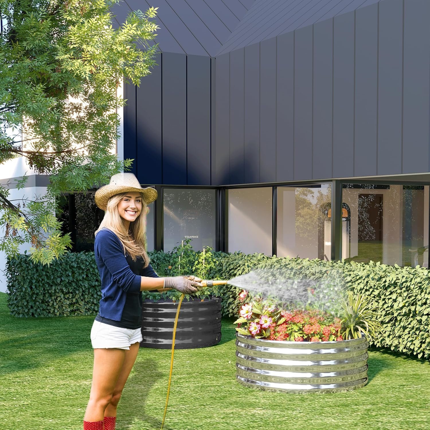 Size: 24″(L) x 24″(W) x 12″(H),Planter raised bed provide outdoor sufficient space to grow vegetables,flowers,galvanized garden bed