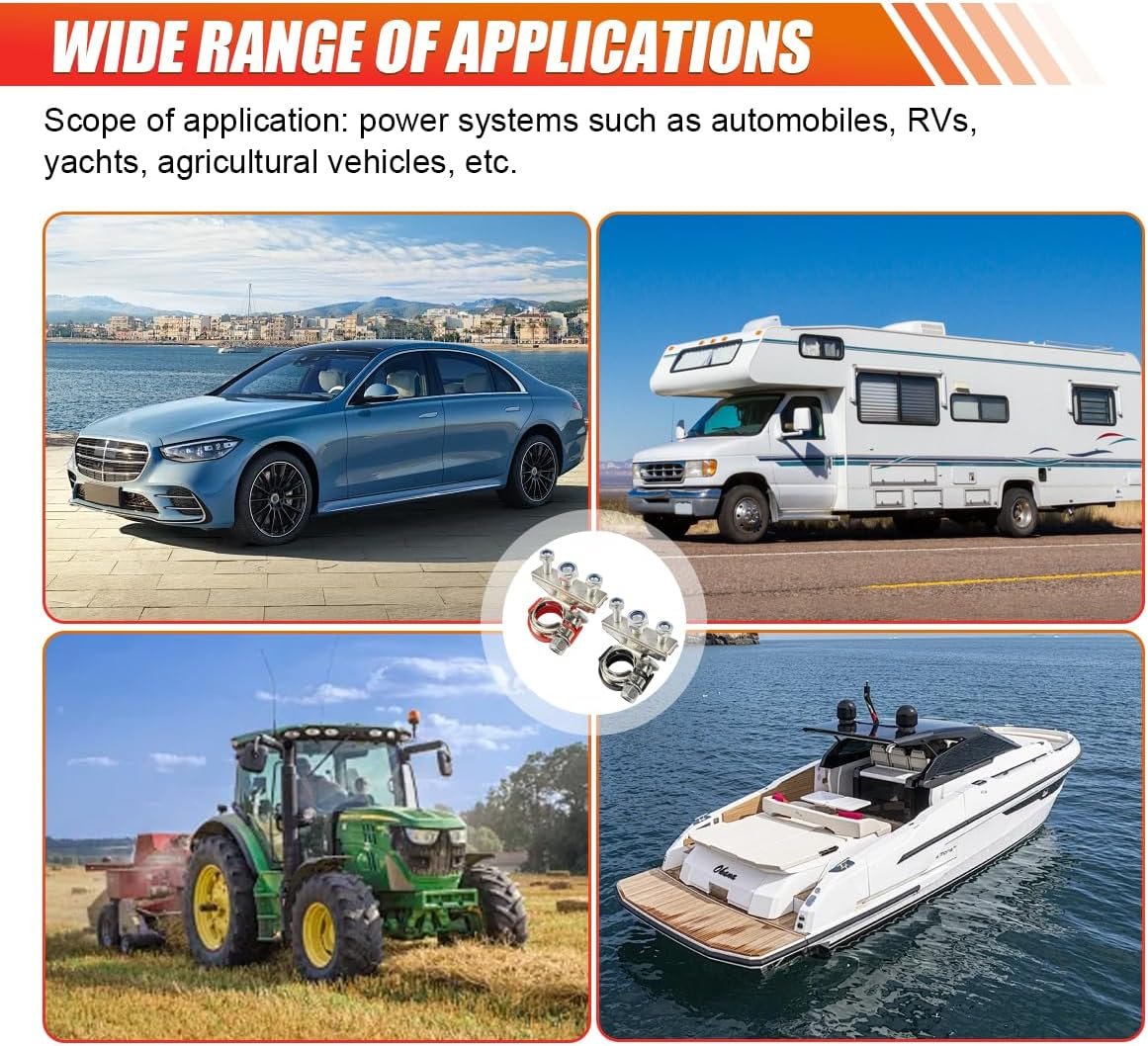 【Widely Use】:This quick change car battery terminal connector is suitable for most battery models and ensures a safe and reliable connection between the top and side post batteries. Moreover, it is suitable for most vehicles such as cars, trucks, boats, motorhomes, etc., and can solve the battery problems of various vehicles, ensuring your driving safety and bringing many conveniences to your driving life.