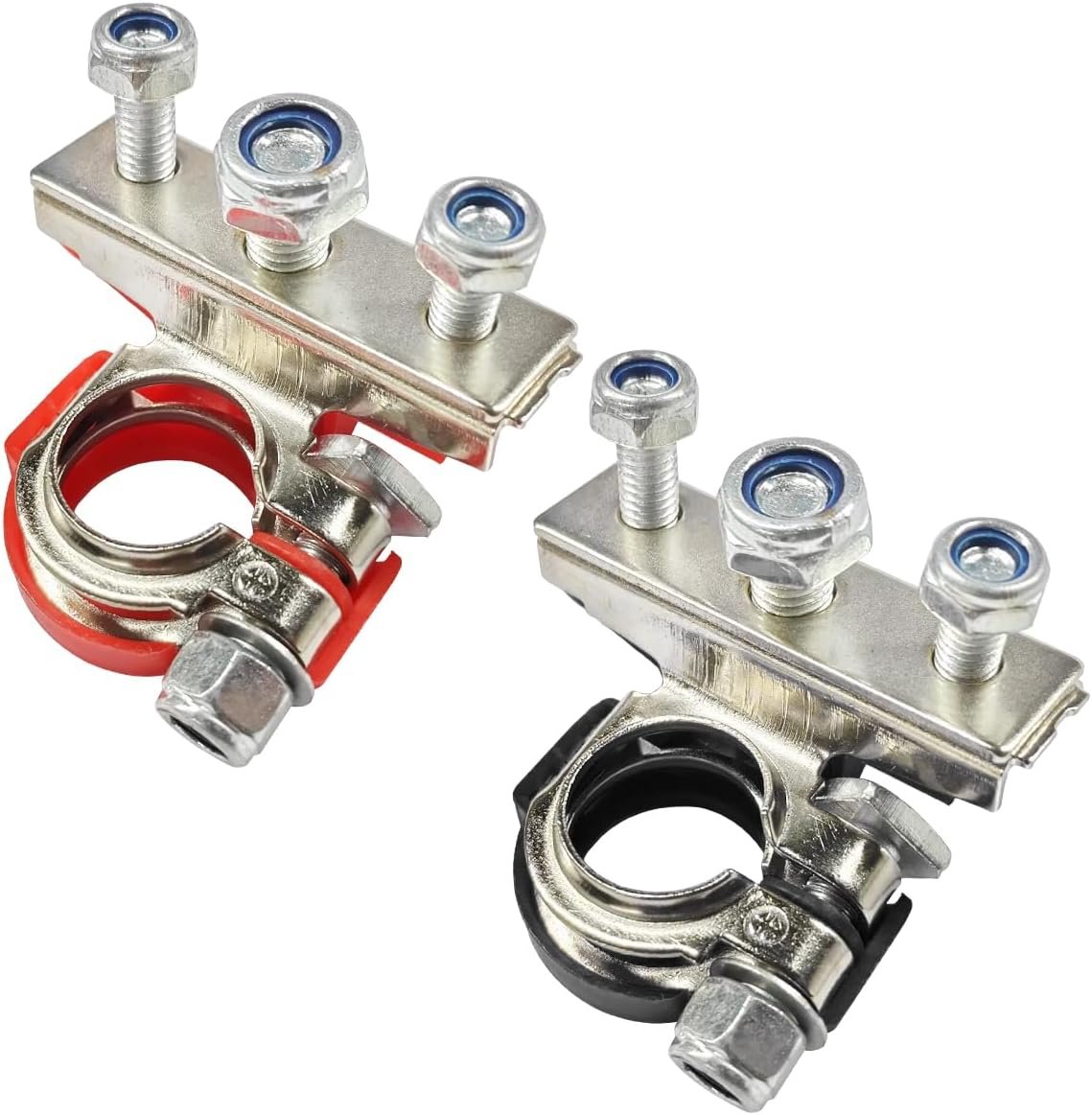 【Easy to Use】:This car top post battery terminal connector kit uses two colors to distinguish the positive and negative terminals, namely red (+) and black (-), which are easy to identify and install, and prevent the risk of electric shock. During installation, you only need to press the control lever to connect the battery to the battery post, and then ensure that the bolts are firm and tightened correctly. The operation is very simple and does not require any other tools, saving you time and effort.