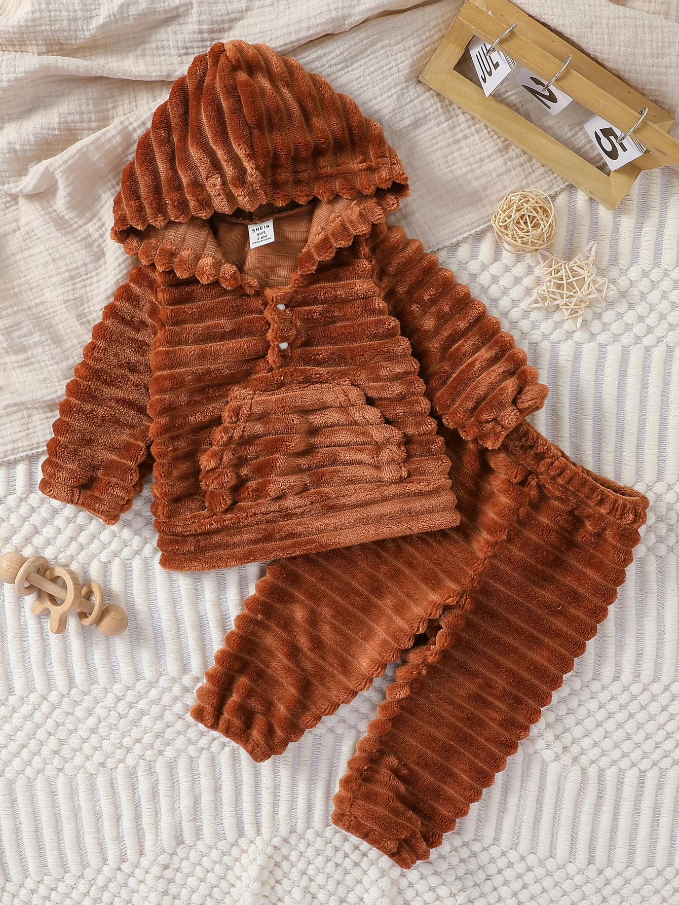2Pcs Baby Boys Fall/Winter Long Sleeve 1-3Y fleece Solid Suit Warm Hoodie Cute Outdoor Wear Set