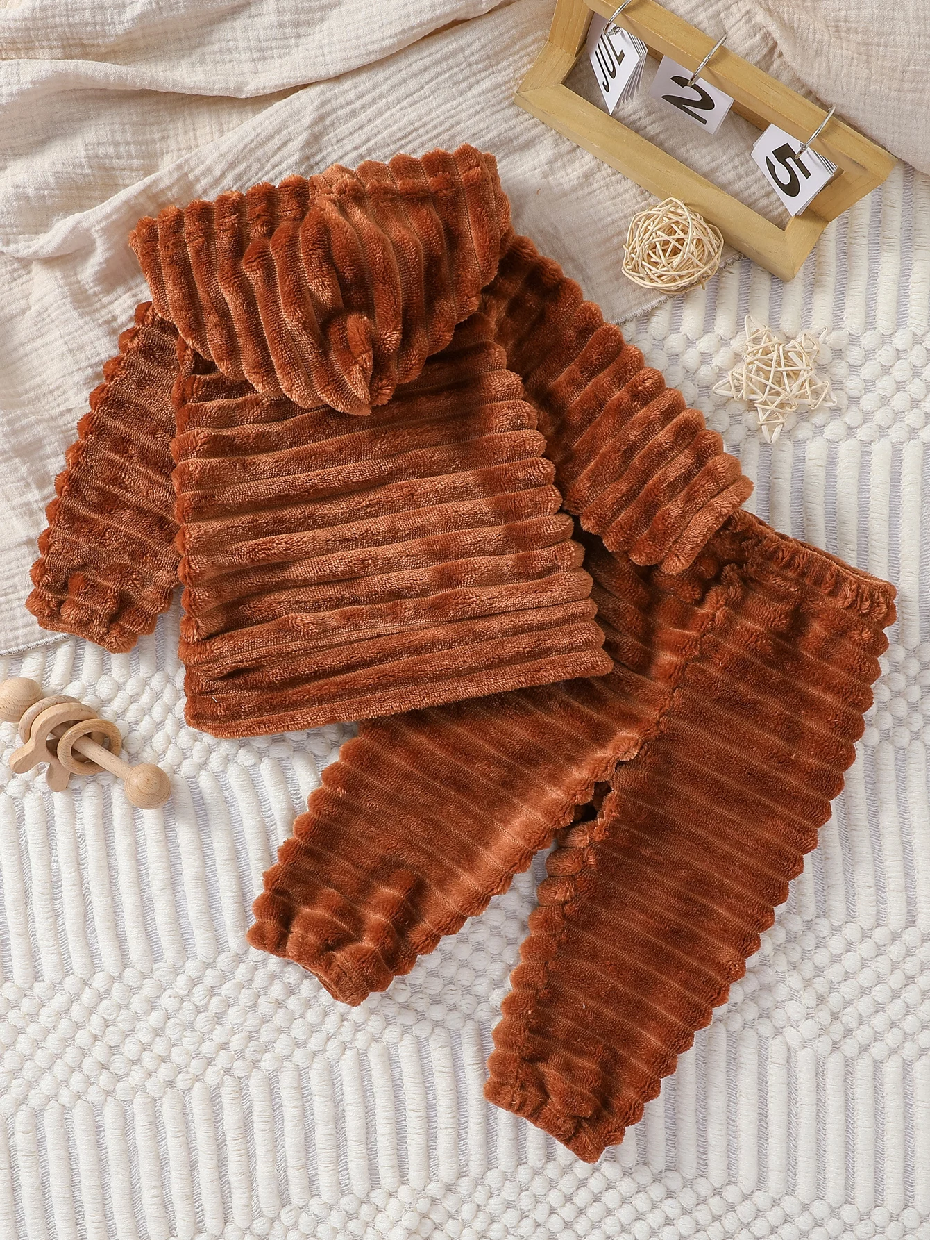 2Pcs Baby Boys Fall/Winter Long Sleeve 1-3Y fleece Solid Suit Warm Hoodie Cute Outdoor Wear Set