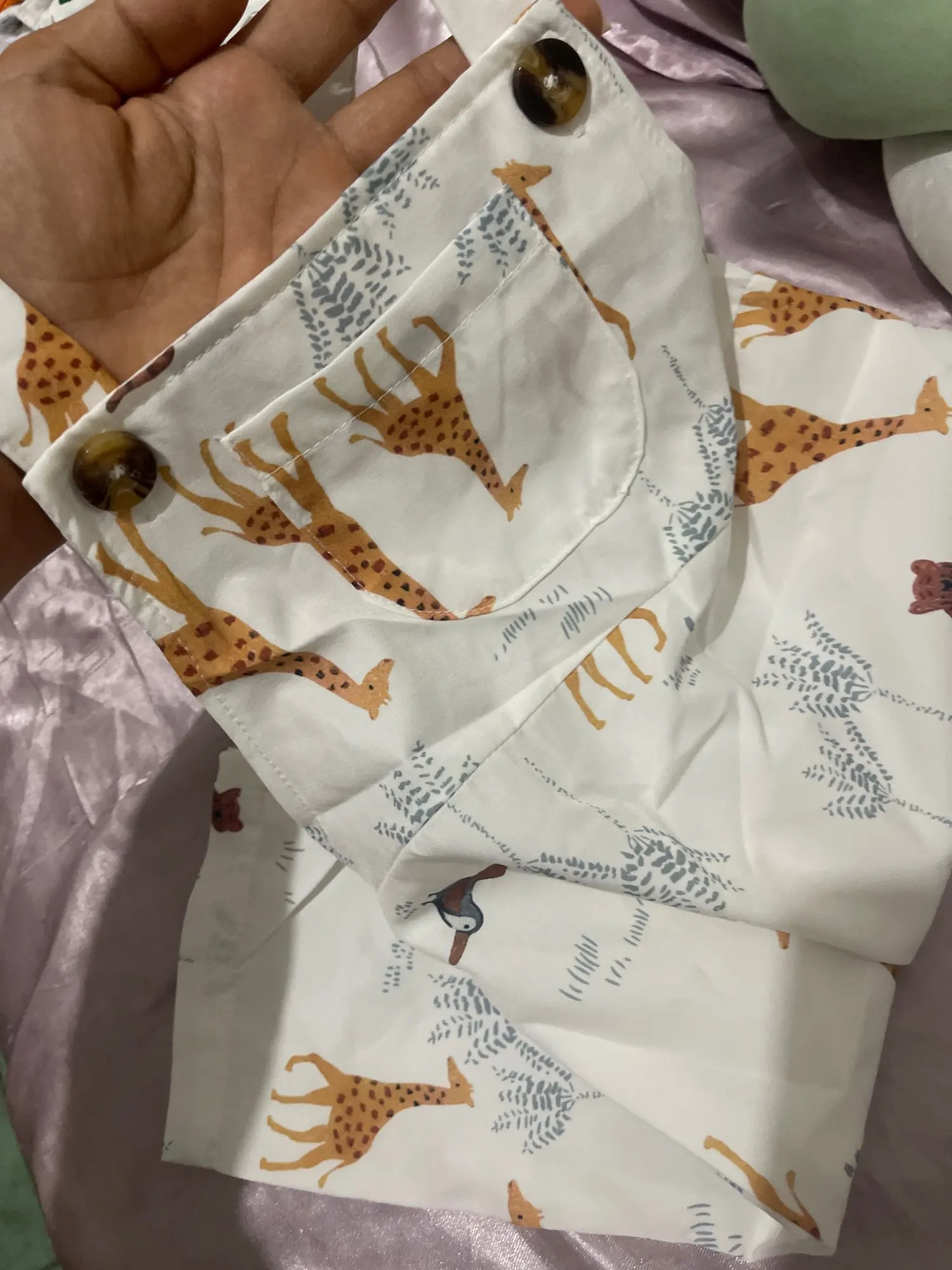 The fabric is of very good quality, the seams look excellent, and the printing of the designs on the fabric is very good. I am very satisfied with my purchase.