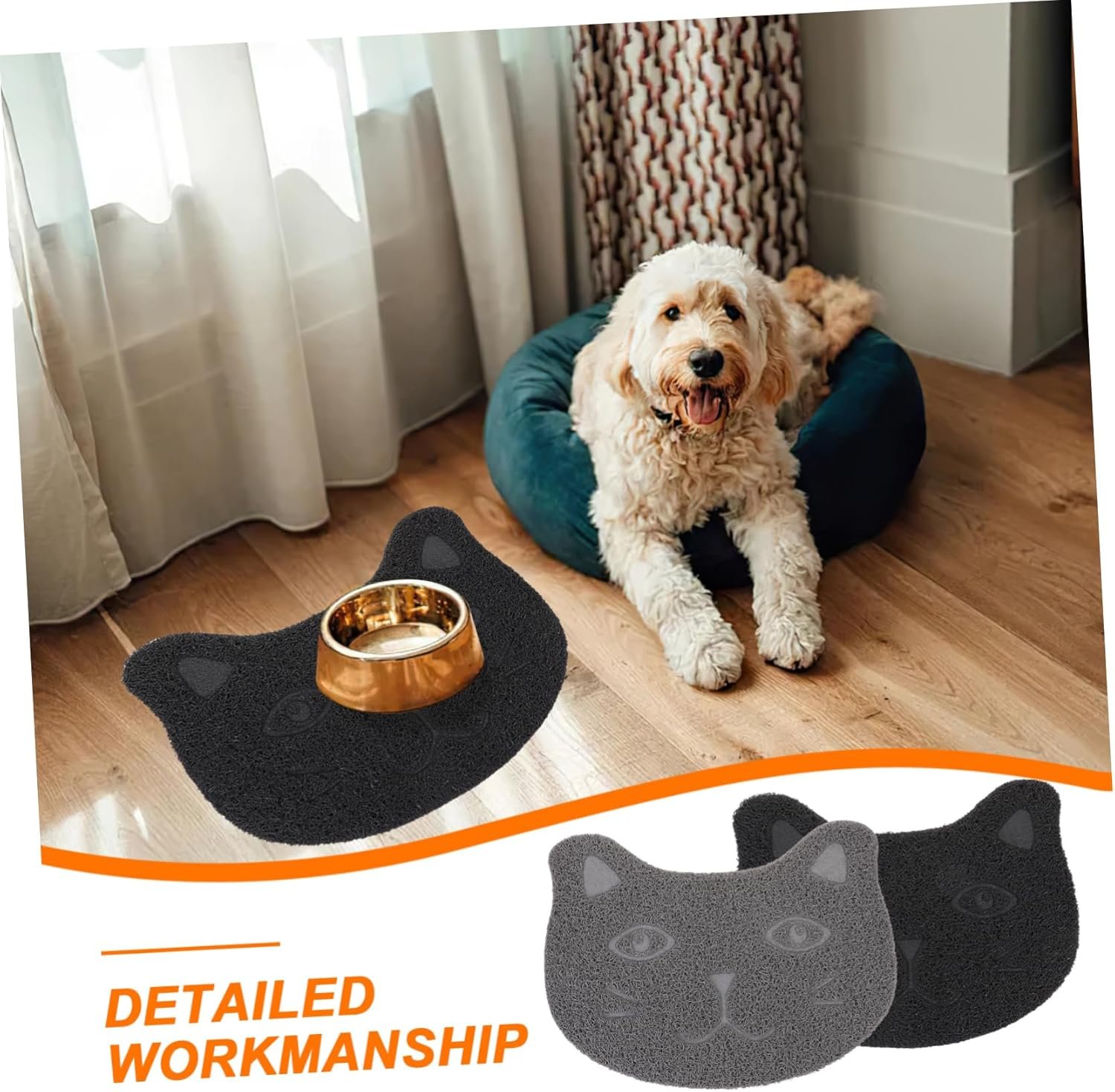 – Adoption of simple and convenient design, this pet litter mat can be used for a long time pet food mat.
