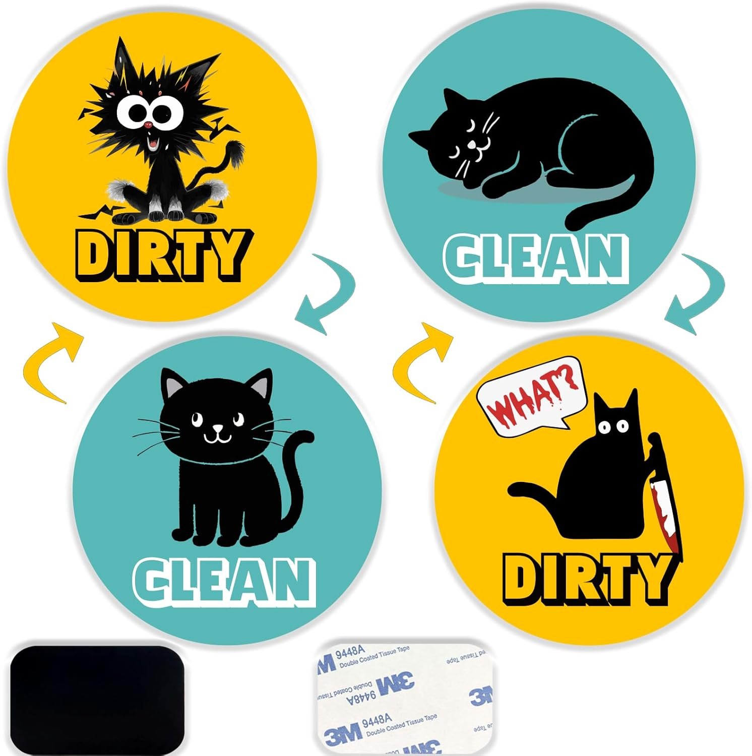 2Pcs Funny Dishwasher Magnet Clean Dirty Sign Double Sided Clean Dirty Magnet for Dishwasher 3.5in Black Cat Dishwasher Magnet Washable Integrated Cute Dishwasher Magnet with 2 Adhesive Metal Plates
