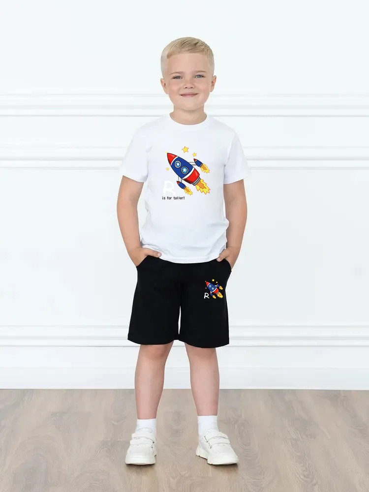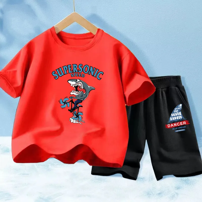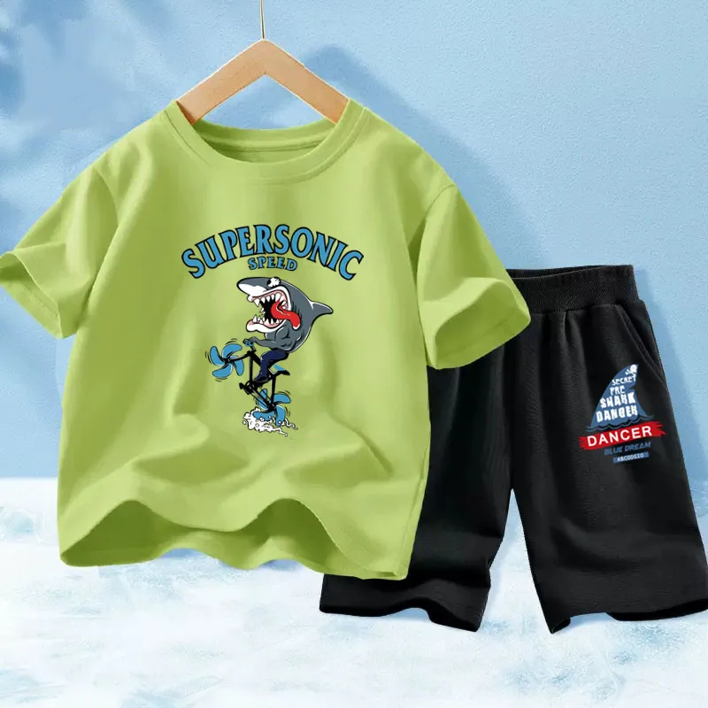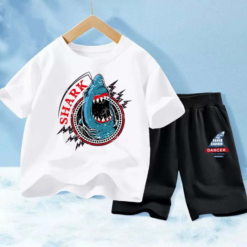 2pcs Kids Summer Sports Style Tracksuit Set Children’s Sea Shark Cartoon T-shirt And Shorts Outfit for Boys