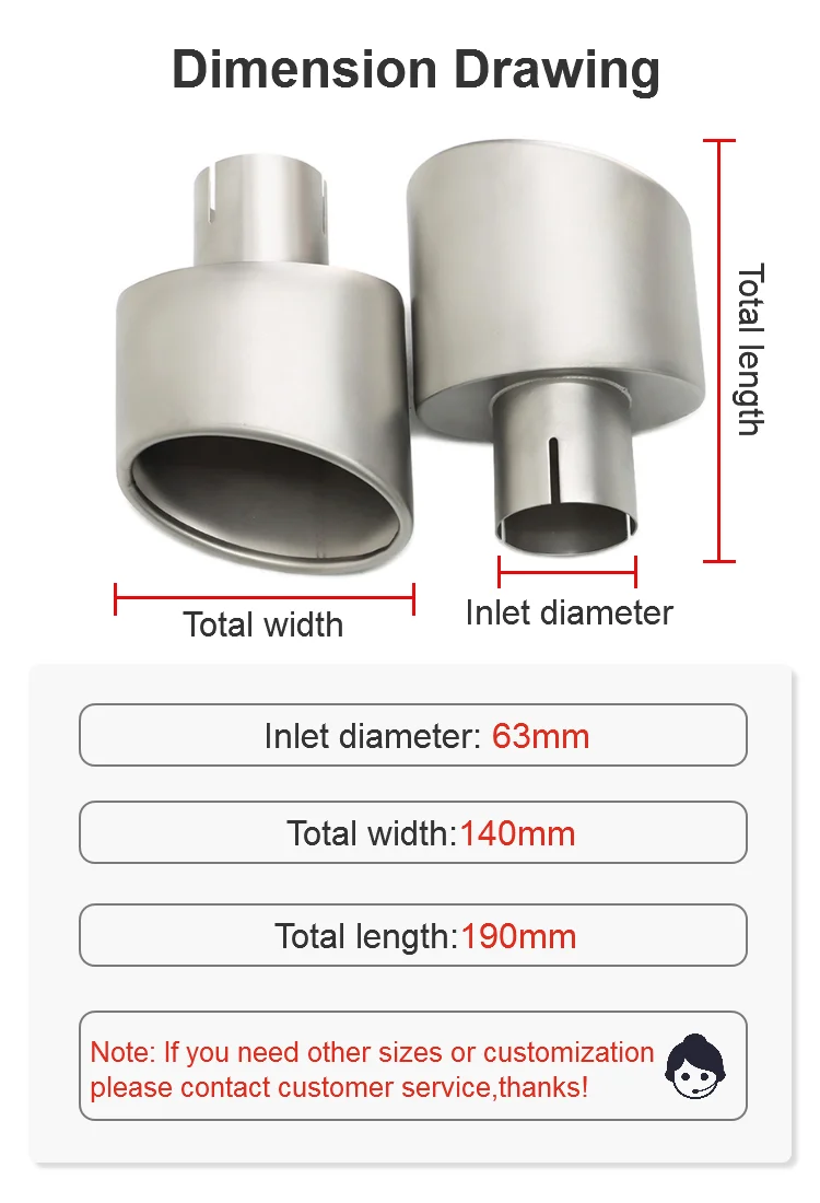 1 review for 2pcs/lot 304 Stainless Steel Universal Car Exhaust Tailpipe 140mm Outlet Rolled Oval Slant Muffler Tail Pipe For Auto Cars