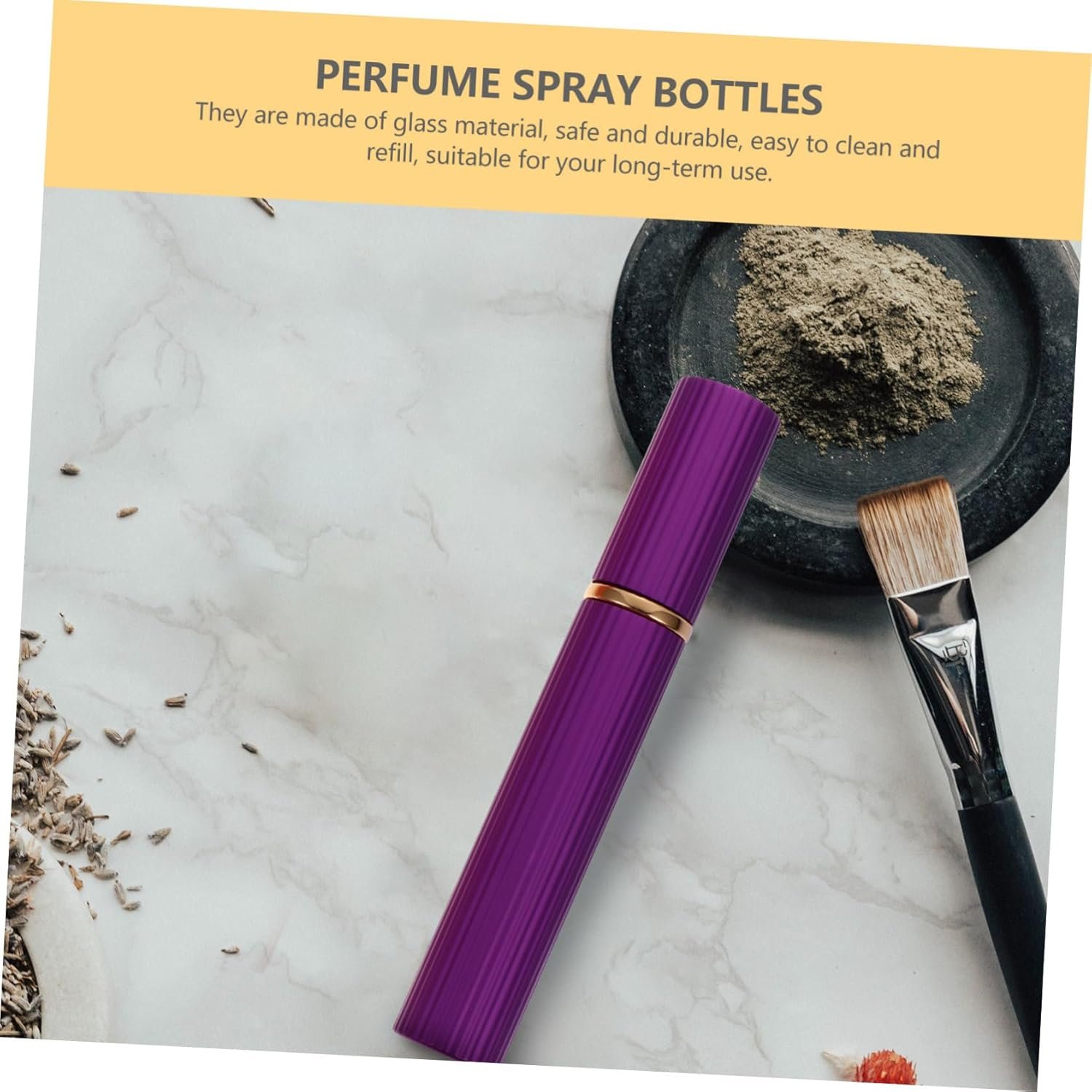 – The spray design is easy to use, it is compact, you can store it in your backpack, gym bag and travel bags, etc Glass Bottle.
